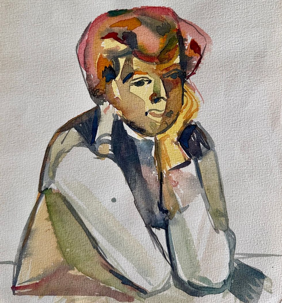 While most of McGaffey’s earlier works, largely abstract oil paintings of human figures, are firmly ensconced in the Bay Area Figurative Movement. In her later years she gravitated more toward landscapes and watercolors but “still painted in that looser style that had aspects of the Figurative, [creating work] that felt much more like capturing a moment on the coast,” says Delamater.