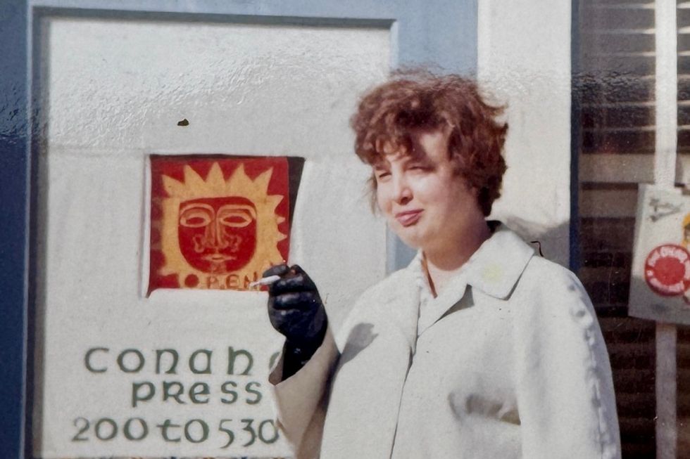 McGaffey was different. When they found her—or, rather, when she found them—she was elderly but very much alive, still creating not just paintings but also woodcuts and linocuts in Pacifica. “She came to us to visit and brought slides of her work and all of these things that were underneath her bed,” remembers Delamater. Over time, they learned that there was more—much more—so that it filled an entire extra room and the garage.