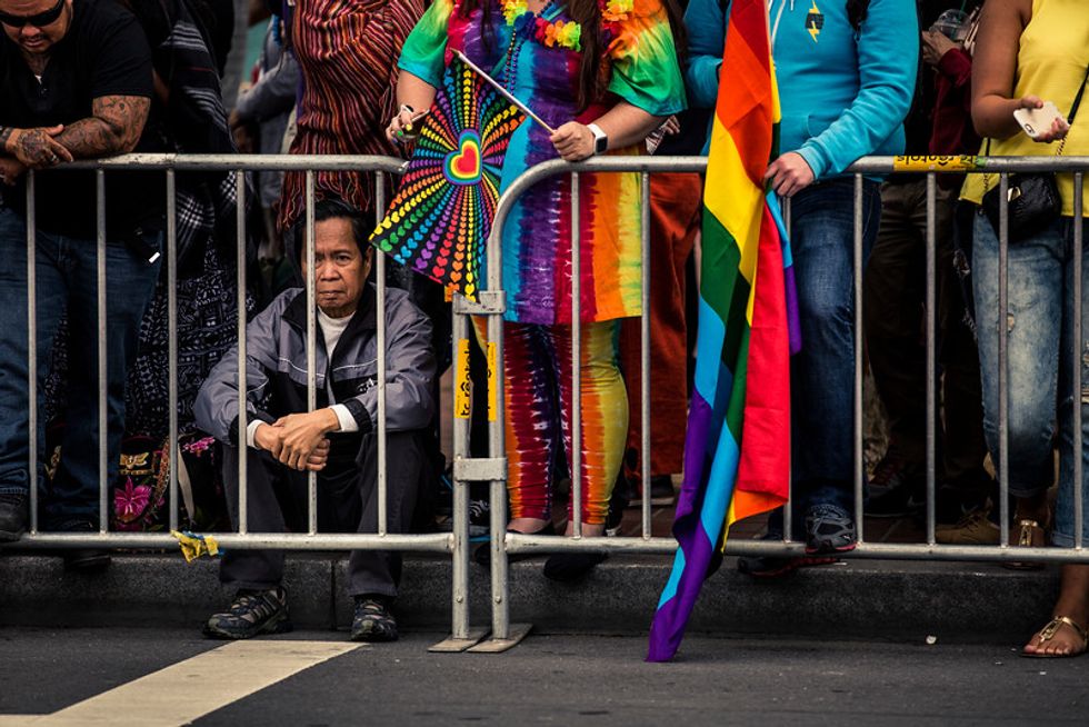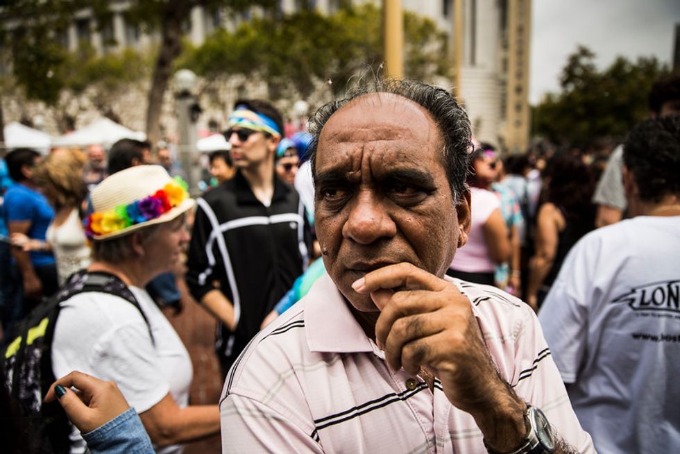 But meanwhile in San Francisco, on the ground at Pride, a beautiful thing happened in front of the lens of photographer Guru Khalsa, who captured a crowd as colorful as the rainbow flags flying over Market Street—black, white, Asian, hispanic, gay, straight, lesbian, transgender, kids, seniors, and more...all, for the most part, celebrating this historic moment together. The images are a stunning portrayal of our city, at once both pretty and gritty, and the people in it who come from all different walks of life but, every so often, step in sync to propel us forward.