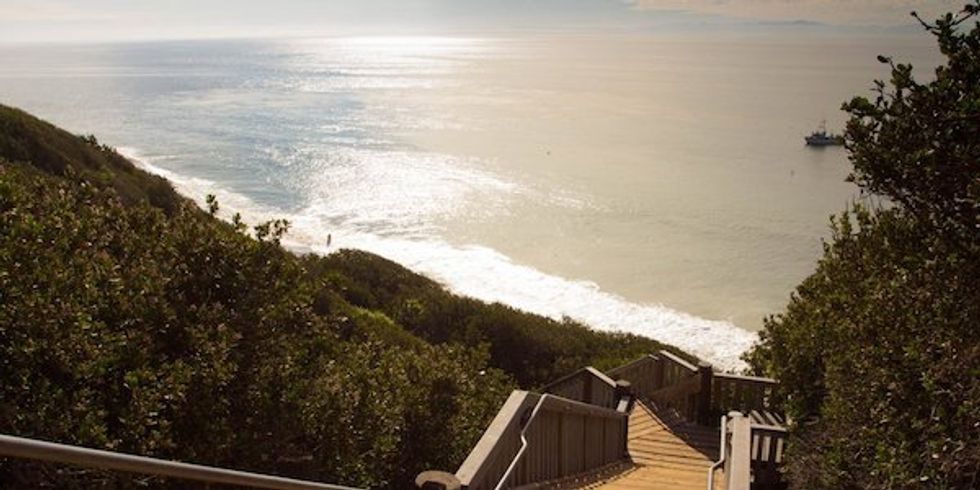 Mesa Lane is located below the tall bluffs in Santa Barbara. 241 stairs lead to the beach, which makes up a narrow band between the ocean and the cliffs. Be sure you don't go during an an abnormally high tide, or there will be no beach at all! If you come at low tide there is plenty of exploring and walking to do.