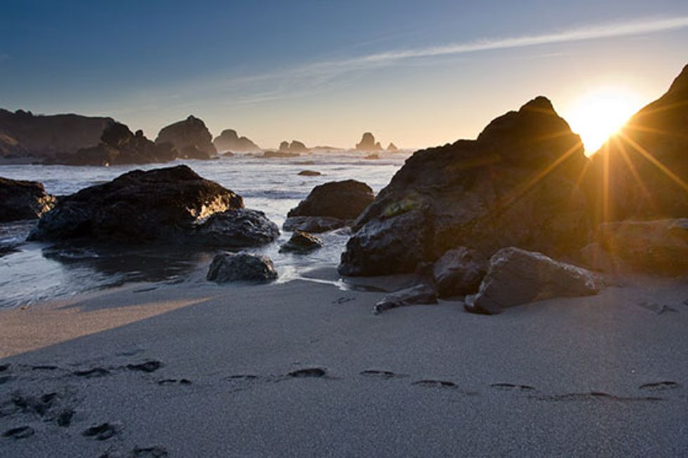 A short walk through wind-beaten redwoods and bull pines leads to small cove with a sandy beach. The short trail makes this an ideal beach for packing a picnic and watching the sunset or taking an impromptu trip to the beach as you pass through the area. Before you descend the trail to the beach, spend a few minutes on the bluff overlooking the ocean. Various species of whales are often seen here during their winter migrations, and keep an ear out for the loud barks of sea lions as they come and go from the Fish Rock Rookery located a few miles to the north.