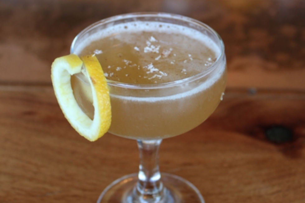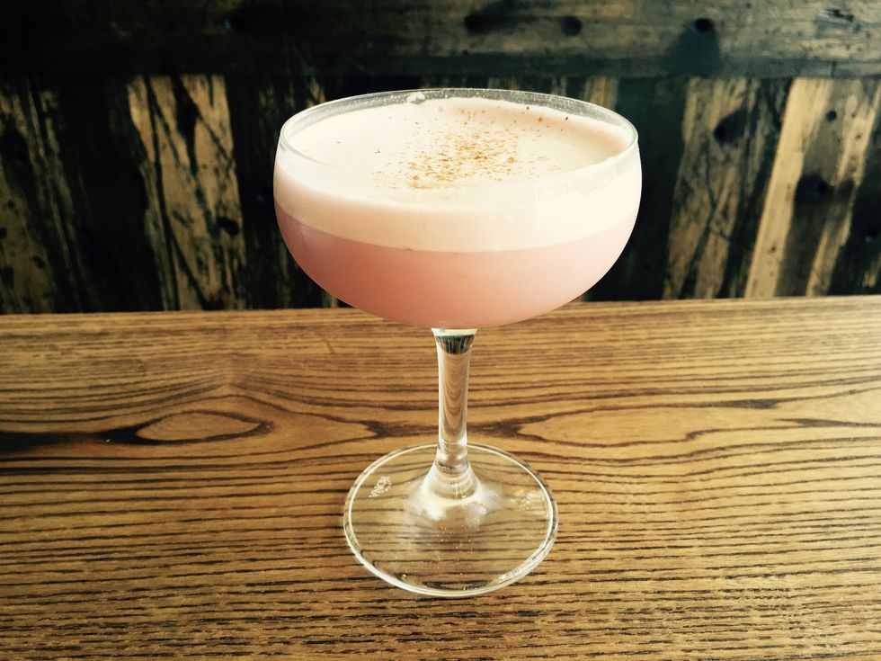 5. Double strain (strain with a hawthorn strainer and a tea strainer to prevent lots of ice from entering the drink) into a chilled coupe glass.