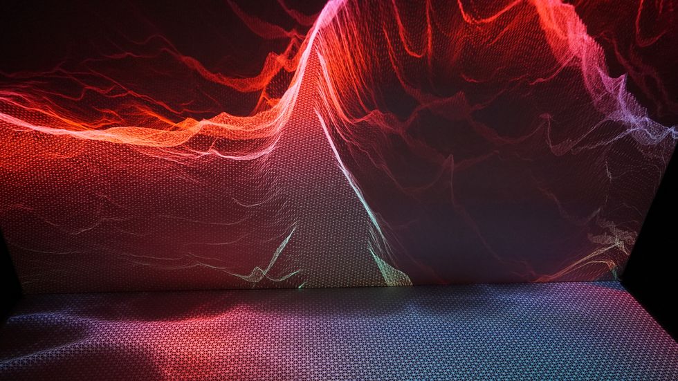 Walking through the space you'll see Behnaz Farahi's newest tech fashion with rare embedded sight-reactive technology. The main gallery space will be transformed into a living organism by Montreal-based artist Mathieu Le Sourd (Maotik) through a motion-reactive piece called "Flow." Based on tides, viewers will be surrounded by an artificial ocean of sorts, swathed in color, light and sound.
