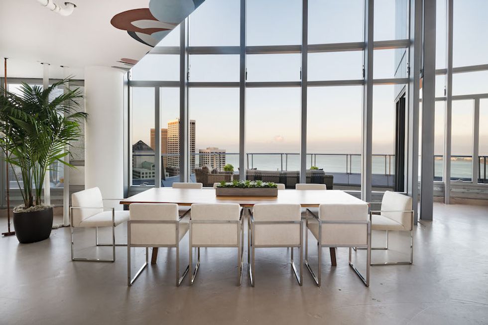 Both penthouses are fully customizable shells awaiting a personal touch, and San Francisco's Jeff Schlarb Design Studio has developed storyboards with unique color schemes and floor plans to help you envision the possibilities. Need a visual? One of penthouses has been staged and fully furnished with pop-up walls and imaginative murals by Green Couch for inspiration.