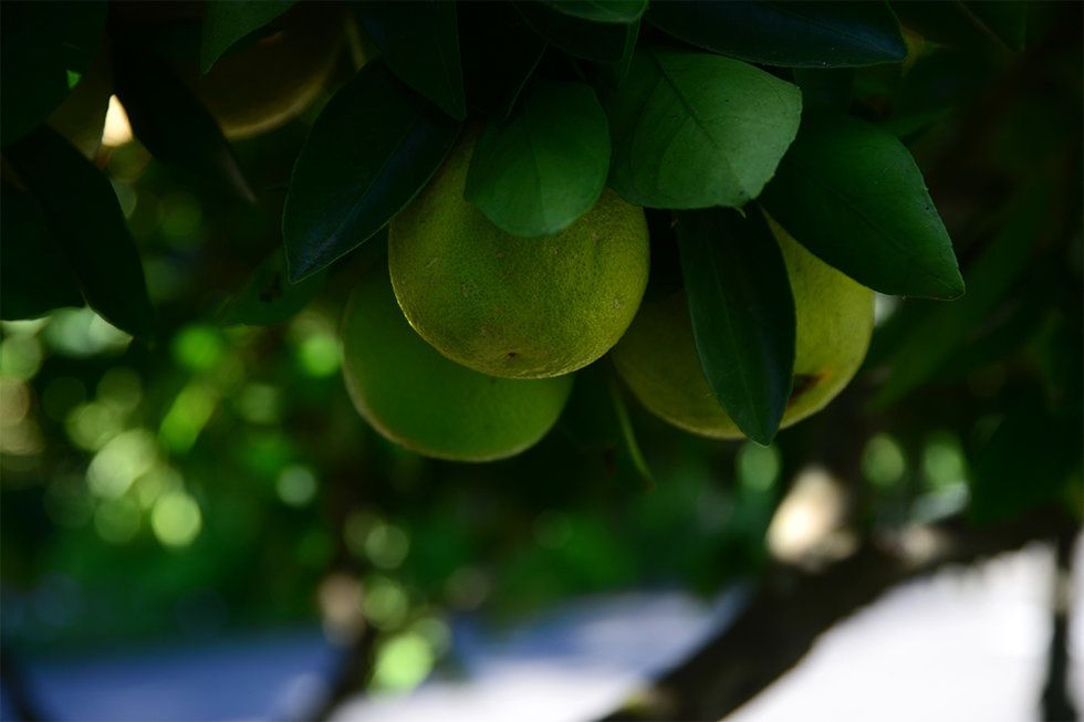 On a brilliant July afternoon, Mallgren started the tour in the inn's neatly manicured citrus grove, whose trees were laden with the developing fruits of Valencia oranges, blood oranges, dwarf mandarin oranges, and Eureka lemons. When the oranges are in season, the inn serves fresh juice for breakfast, but in mid-summer, Mallgren said, he uses the unripe Valencias to make ponzu, a tangy Japanese condiment whose main ingredients are citrus juice and soy sauce.