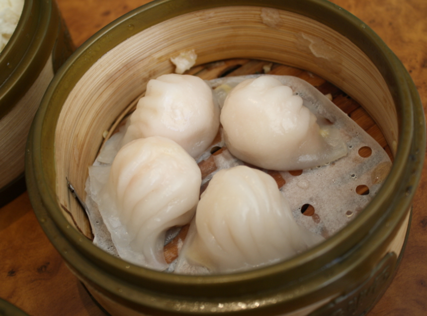 Har gao (shrimp dumplings): Delicate, translucent, slightly sticky dough pockets filled with shrimp.