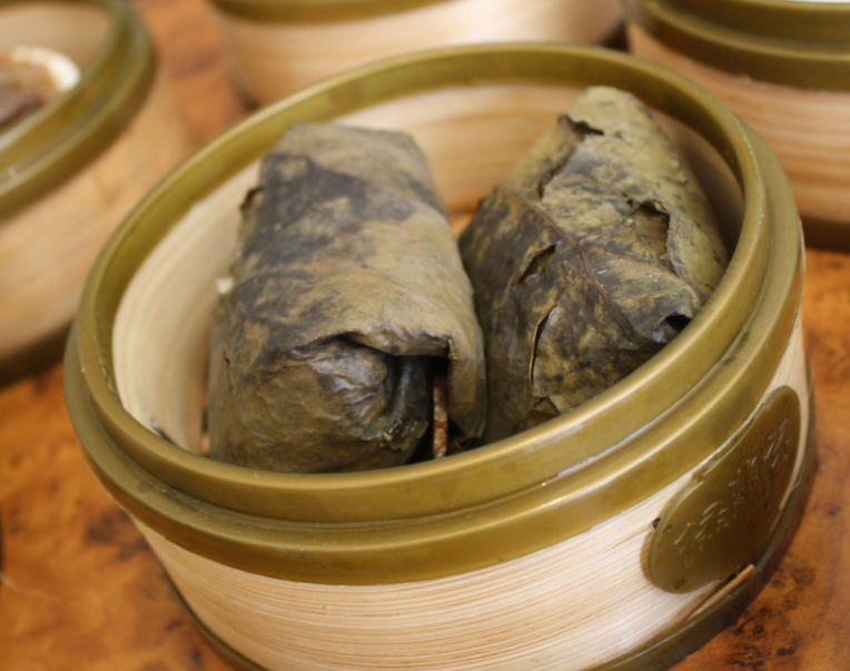 Lo mai gai: A fragrant lotus leaf infuses a mound of glutinous rice and morsels of chicken with a robust flavor reminiscent of steeped tea.