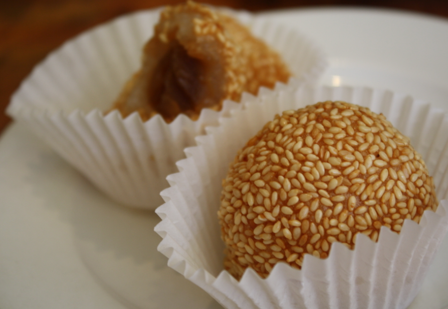 Ji dui (sesame balls): Glutinous rice flour pastries, filled with red bean paste here, are an addictive sweet and chewy bite. They are usually around the size of a ping pong ball.