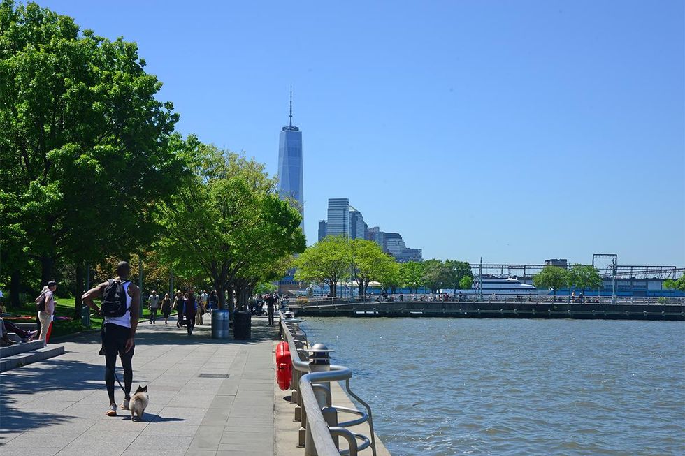 As my friend headed uptown, I headed over to Hudson River Park, a 550-acre esplanade and estuarine sanctuary that stretches from West 59th Street to the northern edge of Battery Park City in TriBeCa. Walking south along the riverfront, which on this particular stretch was packed with sunbathers and picnickers lounging in the grass, I found myself thinking of a chapter in Italo Calvino's Invisible Cities in which the very outline of a city takes on different forms depending on the nature of one's approach. To a camel driver approaching Despina from the desert, its silhouette resembles that of a ship laden with exotic goods, poised to set sail for distant ports with all their pleasures and promises, whereas from the sea, a sailor sees the humps of a camel in a caravan bound for lush oases and desert palaces in whose tiled courtyards girls dance barefoot, half hidden by veils.