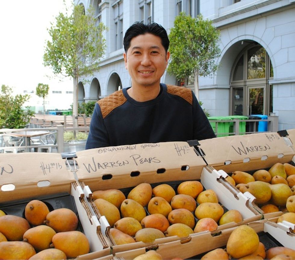 Chef Yuko Kajino was at the Tuesday Ferry Plaza Farmers Market this week to stock up on the Warrens which are one of his favorite fall treats. His Euro-Asian-influenced menu at Chaya is a celebration of the delicate techniques he honed at Tuji Culinary School in Tokyo and his desire to work with the best seasonal ingredients he can find. Yuko grew up just an hour north of Tokyo and first worked his way through Chaya’s kitchen in Japan before moving on to Chaya Beverly Hills. In 2010 he relocated to the Bay Area to take over the kitchen at the San Francisco Chaya, which is located across the street from the Ferry Plaza Farmers Market.