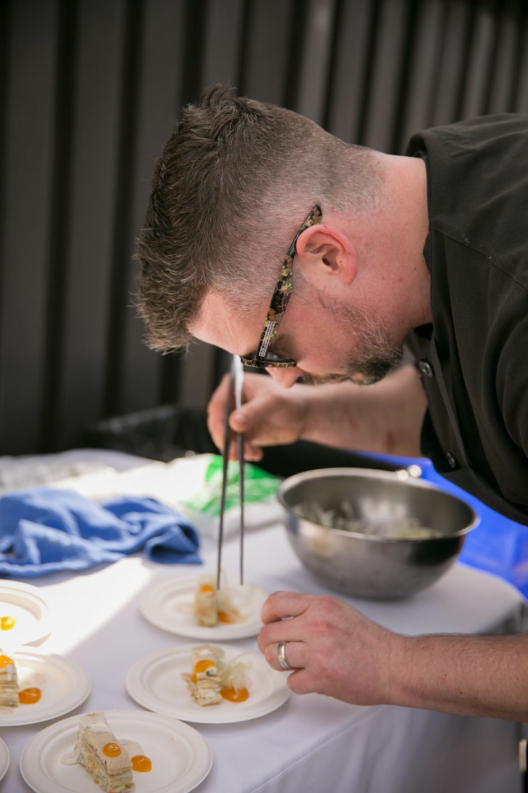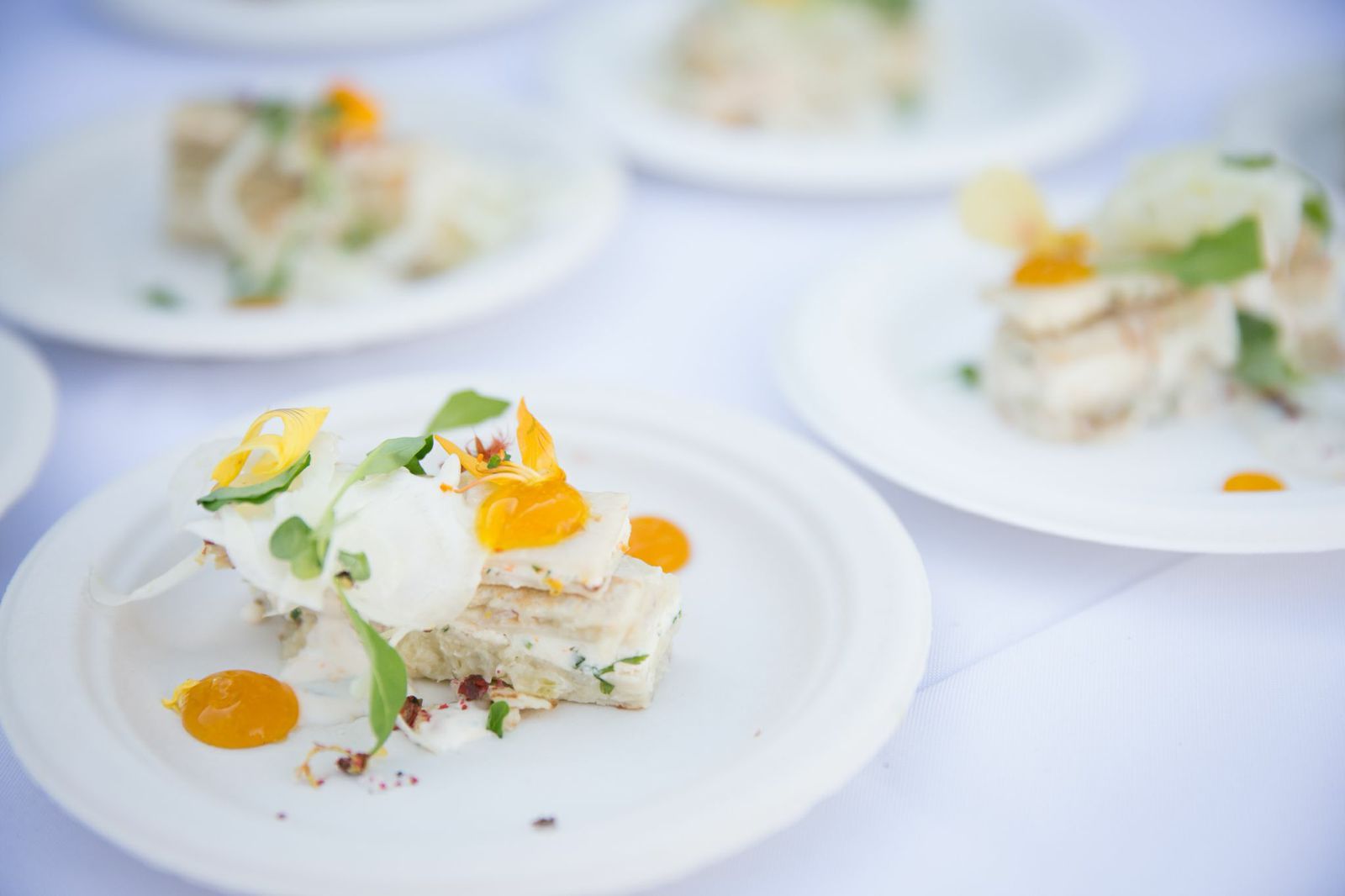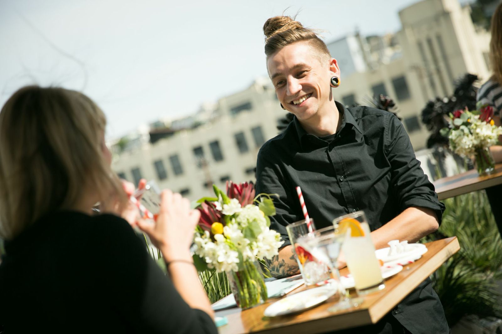 The pair scoured nearby farmers markets for the perfect combination of fresh ingredients to not only infuse the vodka with, but structure a custom cocktail around. They call it the N.Y.M.G.S. (Not Your Marina Girl Salad), a fitting title considering the leafy products they chose: arugula, fennel, orange zest, and nasturtium flowers. Miller did what he does best by supplying some bomb bites to compliment the cocktail: lentil crepes with fennel confit, nasturtium goat cheese, and saffron gel. The food and drink pairing was a huge hit among CreativeLive employees who sipped and snacked in the sunshine atop their office's roof deck. Yes, roof deck as in a wide-open space with unobstructed panoramic views of SF. The office envy is real.