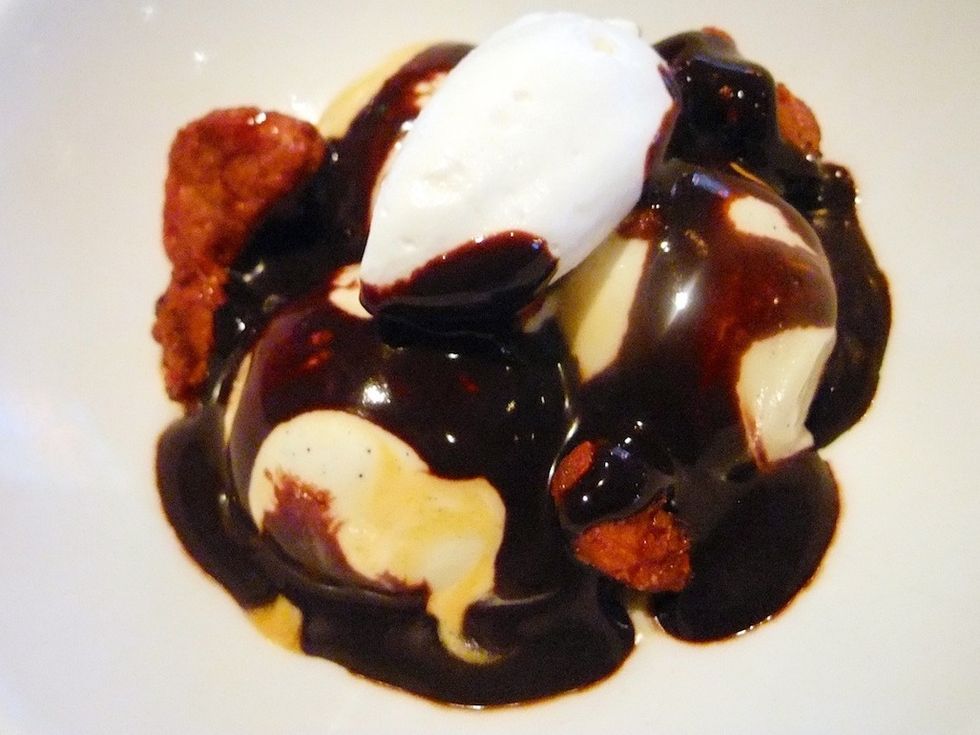 Sobel describes the pork-themed Sunday prix fixe ($39 for three courses, available through the end of August) as "what I'm in the mood to eat on Sunday," meaning comfort food favorites like schnitzel, braised pork cheeks, gougères and a juicy cassoulet. Each week the menu changes and includes piggy desserts like French crullers with candied bacon or a sundae with bacon caramel and chocolate sauces. In addition, it’s not unusual for pork to work its way into much of RN74's regular menu, from first courses like grilled squid with shaved lardo, piquillo peppers and squash blossoms to main dishes such as pork loin, crispy belly and spicy crepinette.