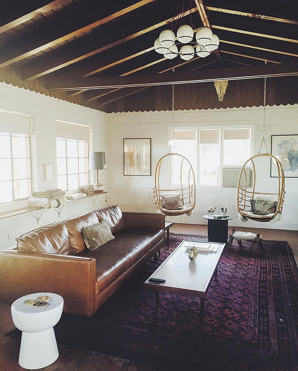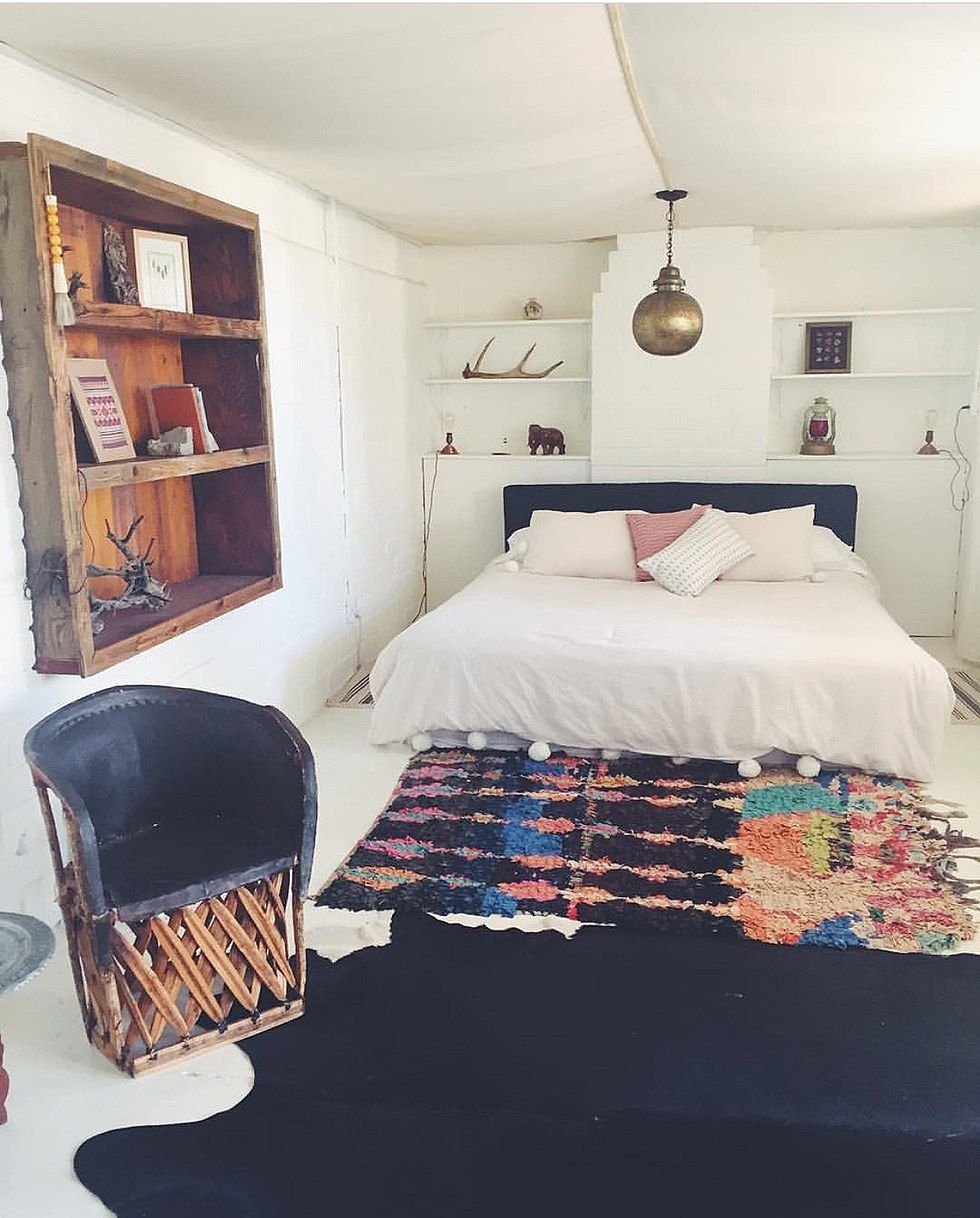 The Joshua Tree House came to be after a one-night stay on a cross-country road trip in 2014. Sara and Rich fell in love with the area and decided they wanted to have a place to retreat, so they bought their first home there the following year. After putting it up on Airbnb and creating an Instagram account, it became wildly successful with a growing list of influencers who have stayed overnight, including New Darlings and Rocky Barnes. In 2016, they decided to buy their second home, the Joshua Tree Casita, which can also be rented on Airbnb.