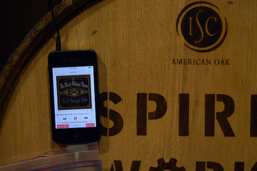 “The idea is that the sound vibrations will allow the whiskey more inhalation and exhalation from the wood," said Patz. “We were tasting these two Devil Make Three barrels, and instantly you could smell the difference. The waft was so different in terms of aromatics."