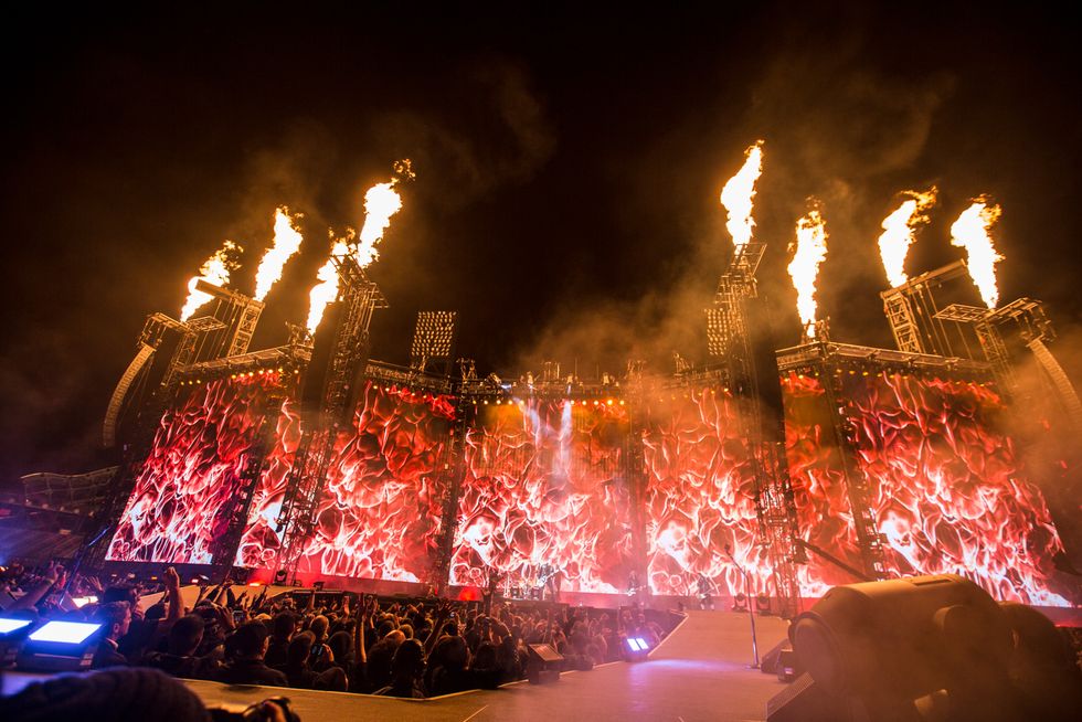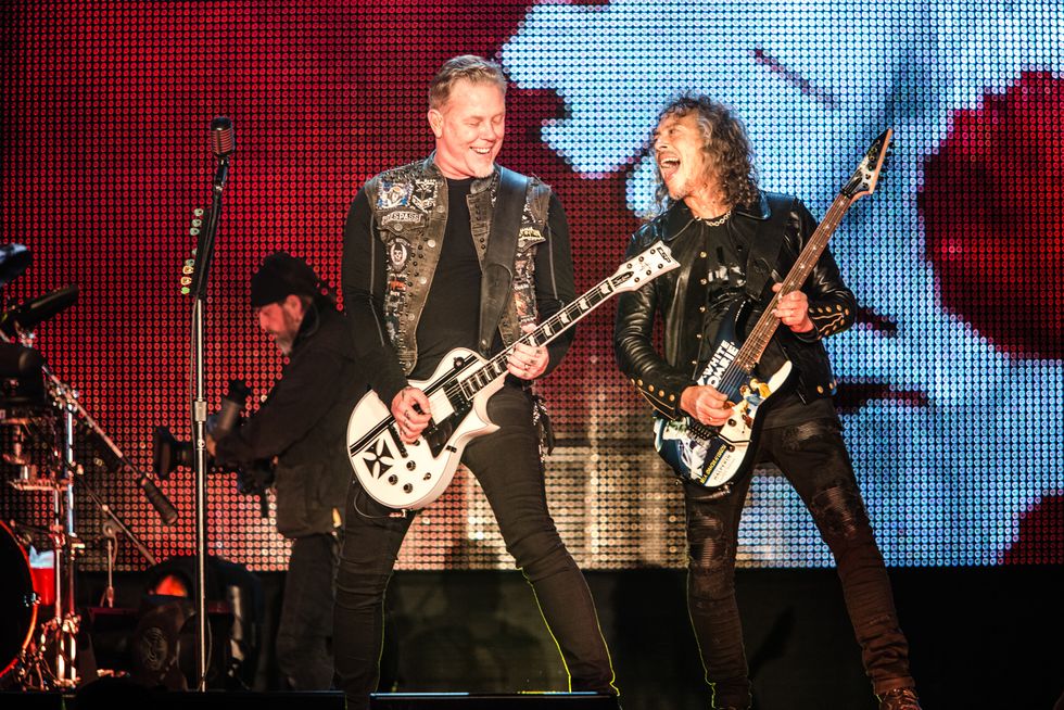 Sky-high torches of fire exploded from the stage and images of dancing flames on several screens lit up the crowd as the band played classic songs such as “Creeping Death,” “Enter Sandman,” and “Master of Puppets.”