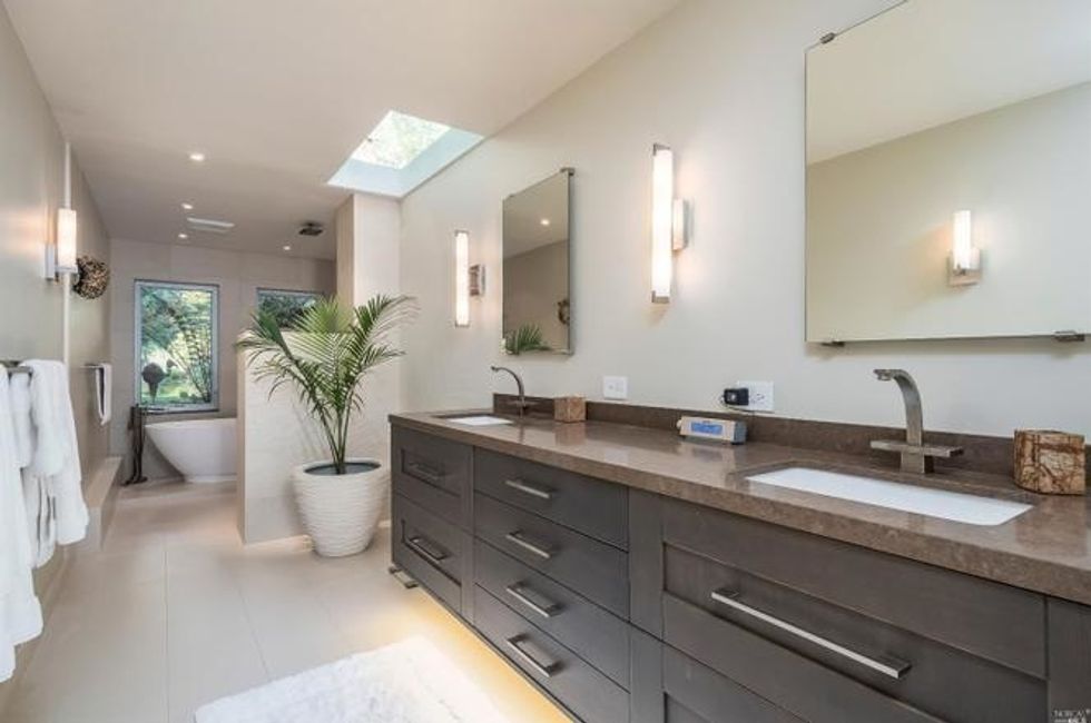 The first thing you'll notice is the array of floor-to-ceiling windows and skylights aimed at bringing the outdoors in; many of the rooms also open onto the yard.