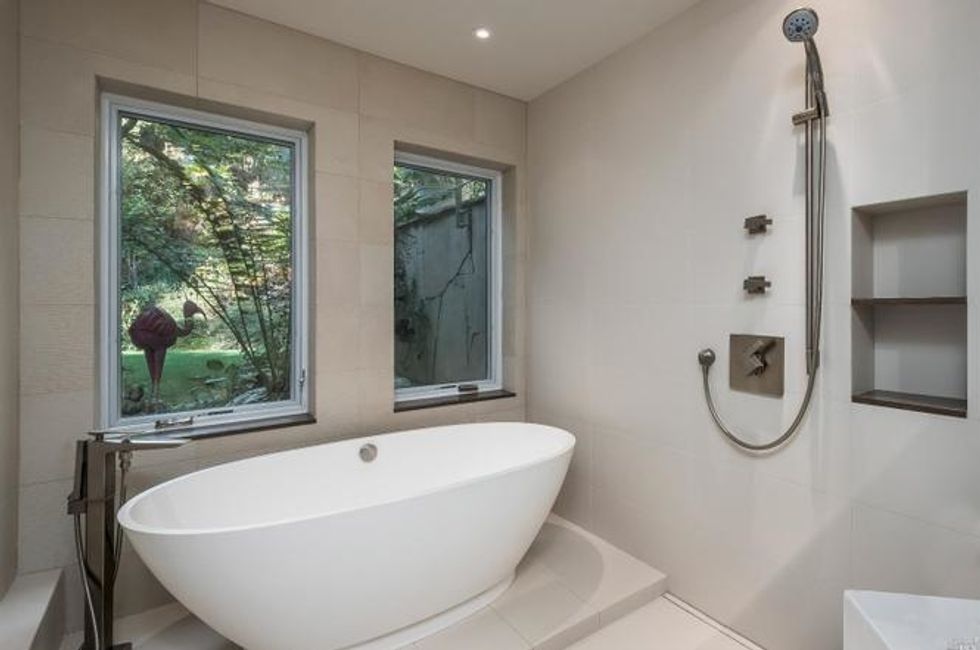 Surrounded by oaks, Japanese maples, and redwoods, the property has a number of meandering paths and flagstone patios; there are also multiple ipe decks for enjoying the outdoors. Oh, and the house itself is pretty nice too.
