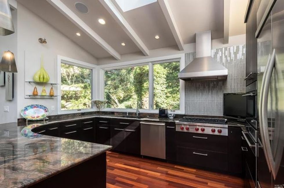Next time you find yourself feeling fed up with the rat race of the city, of being packed in like sardines, of calling the breezeway beneath your upstairs neighbors' balcony "the backyard," remember this Mill Valley home, where the one-third acre setting feels like a private park.