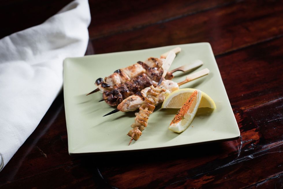 Even the plates are art—imported pottery that makes food even prettier. Hamachi sashimi is elevated with avocado slabs and diced chives ($8), while fluke—a mild, sweet, flaky fish—gets a flavor boost from sansho (little, green fireball peppers), lime, and shaved sunchoke.