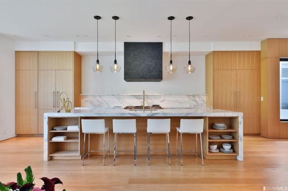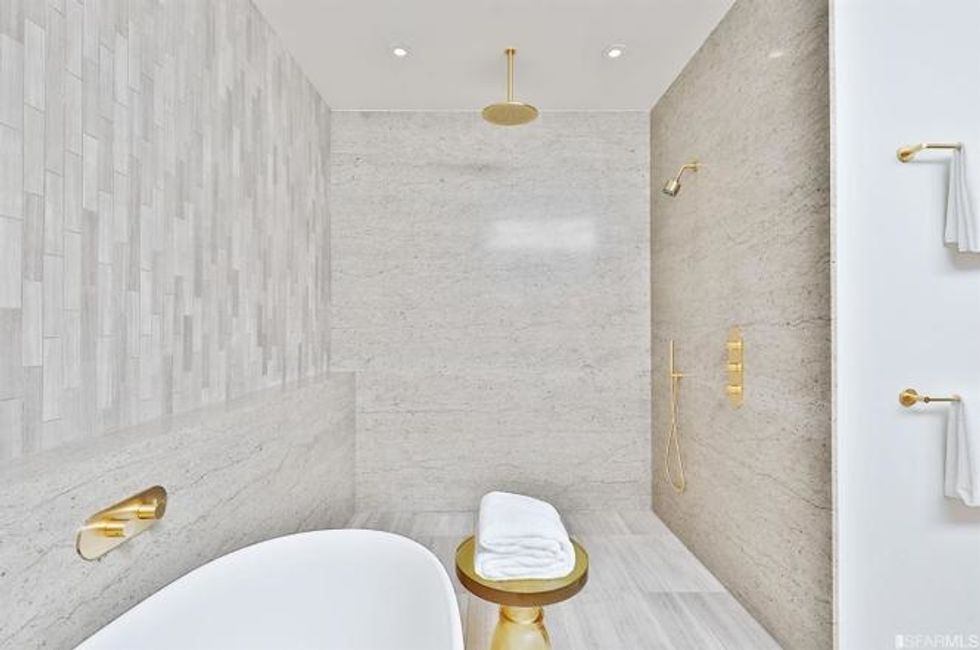 Modern farmhouse style meets urban townhouse at this Noe Valley home where nearly 5,000 square feet are fully finished out with all the designer touches, from limestone built-ins to 24-karat gold fixtures.