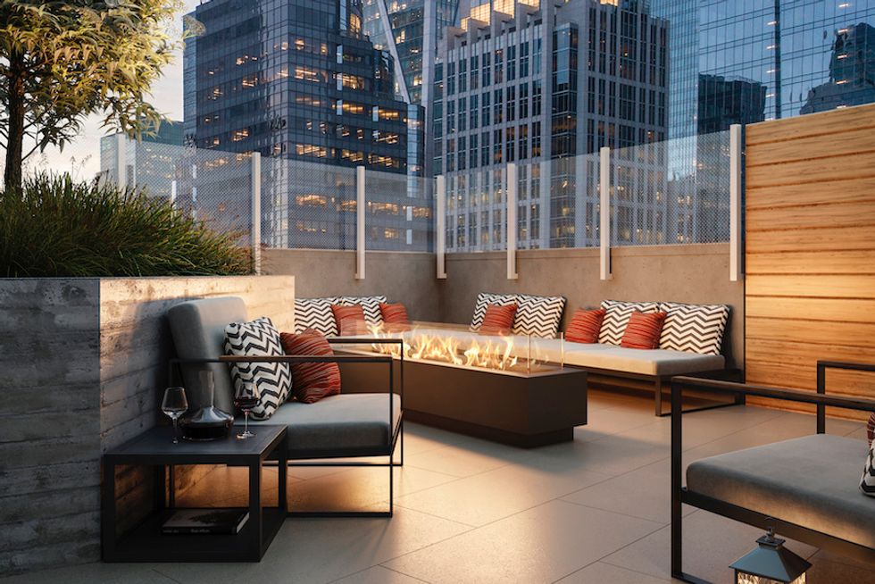 As part of the Mira community, you'll have access to amenities including a courtyard, rooftop deck, private dining, and lounge—not to mention the Jay Wright–designed fitness center, children's playroom, conference room, dog washing station, valet parking with electric vehicle charging stations, bicycle parking, and over 10,000 square feet of retail space downstairs.