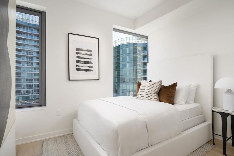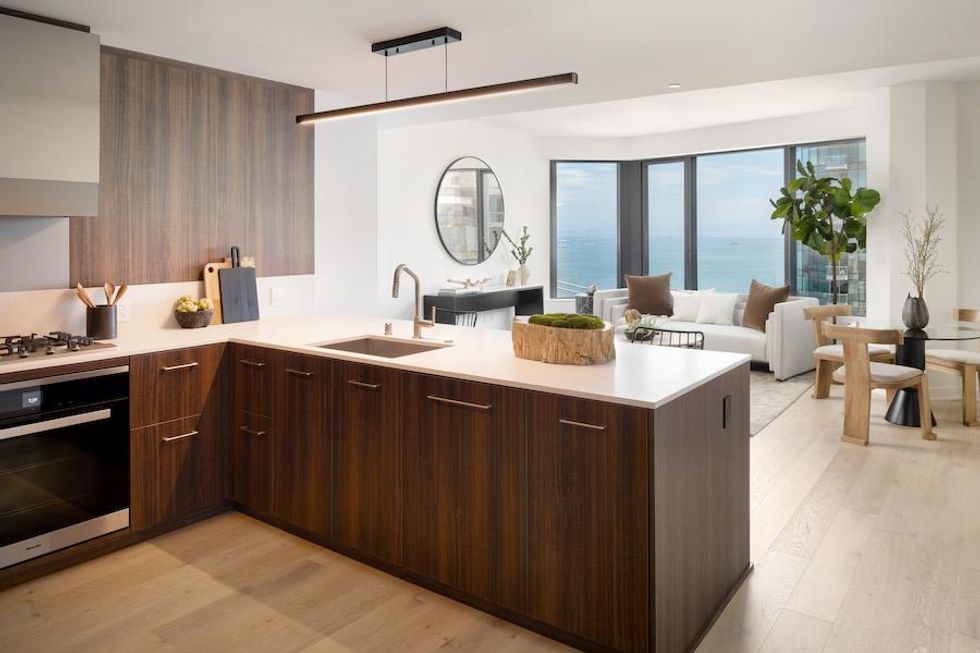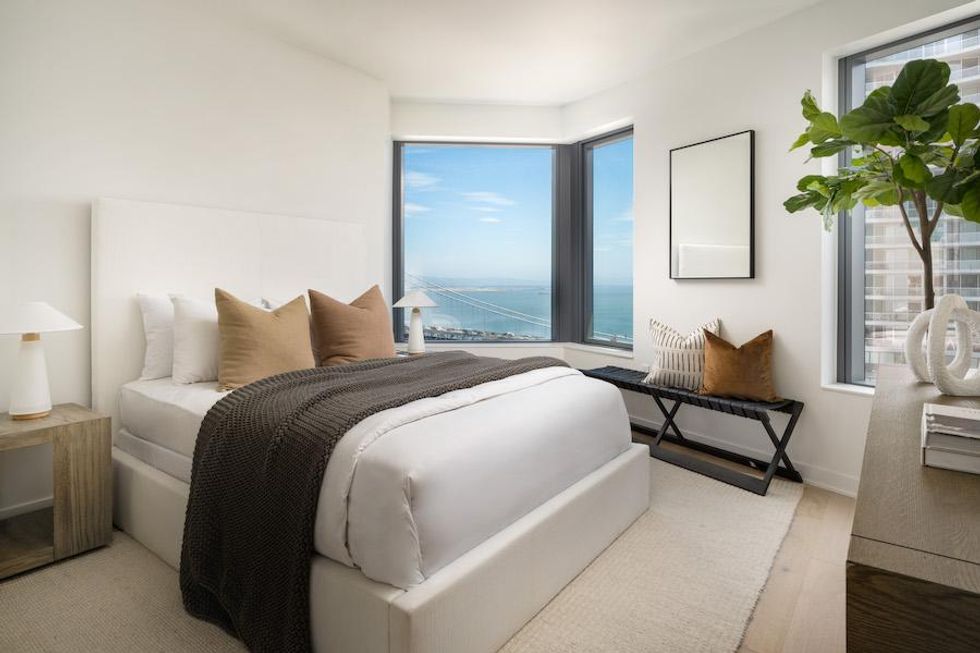 Mira’s design ensures that every living room is expanded by a bay window. Fabulous, 180-degree views of the water and city skyline shift in perspective from floor to floor as the bays rotate around. Additionally, Mira’s enviable location between Spear and Folsom streets allows for a kind of crisp, bright light that is rare for San Francisco.