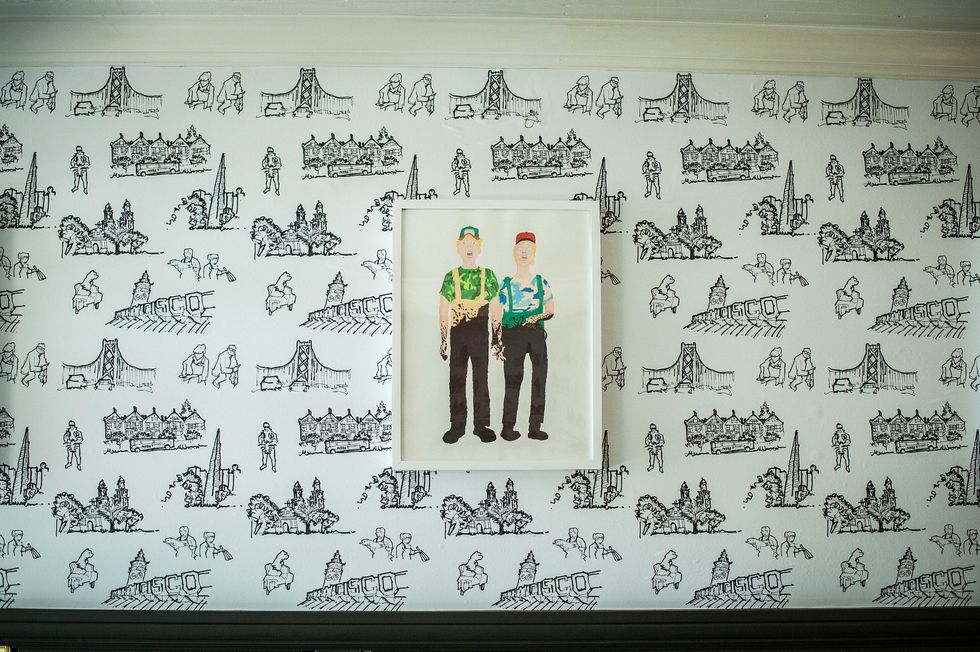 The newly launched Mission D&A is a series of themed, pop-up dinners hosted by dynamic duo David Nayfeld and Angela Pinkerton in the former Roosevelt Tamales Parlor space on 24th Street. But for fans of the former Mexican eatery, don't expect to see any of the old decor in this revamped restaurant. The space was completely renovated by interior designer Jon de la Cruz, owner of DLC-ID—who even personally designed the wallpaper with scenes depicting the two chefs-owners and Nayfeld's dog, Cassidy.