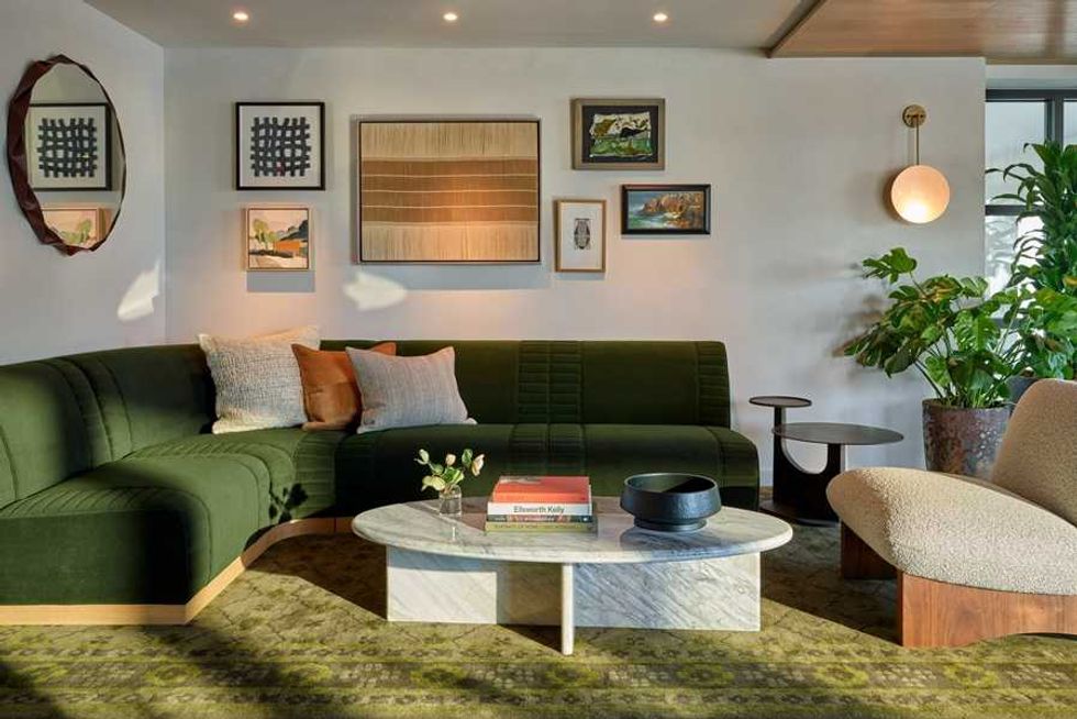 A social hour every day in the lobby offers tastes of local wine and special bites (on my visit there were mini cones of steak tartare topped with aioli and mushroom tarts). It’s a lovely space, with a high-ceilinged sitting area with a fireplace, couches, giant arched windows, and healthy house plants that feels like a posh living room. Along the back wall is a long green velvet bench with a few marble-topped tables, a perfect nook for coffee or a glass of pinot.