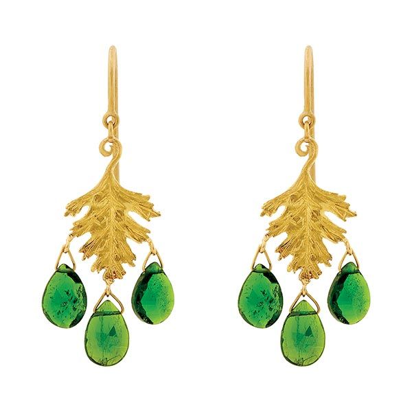 8. Cathy Waterman Chrome Diopside and Gold-Leaf Earrings / $1,870