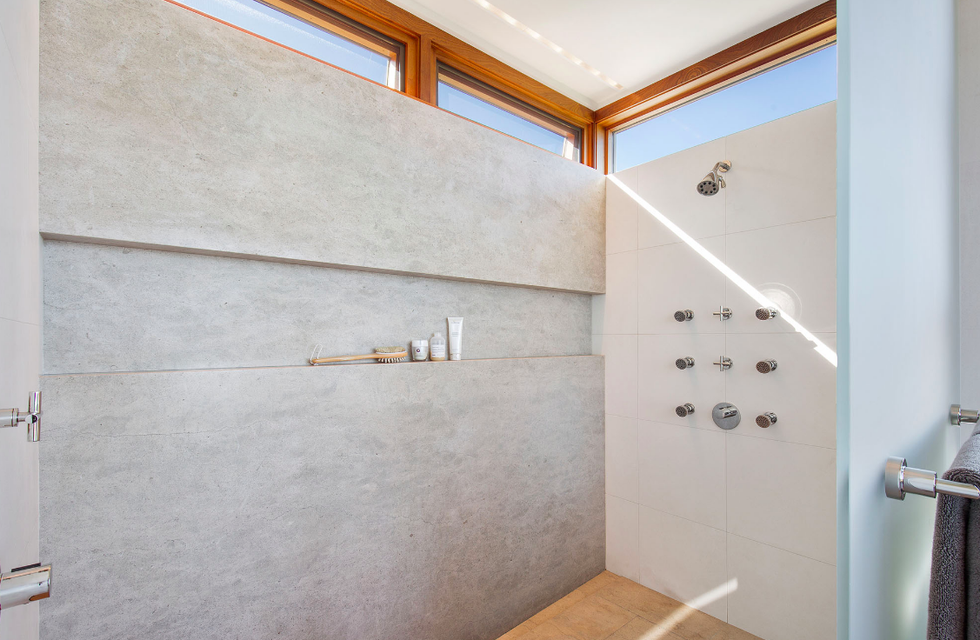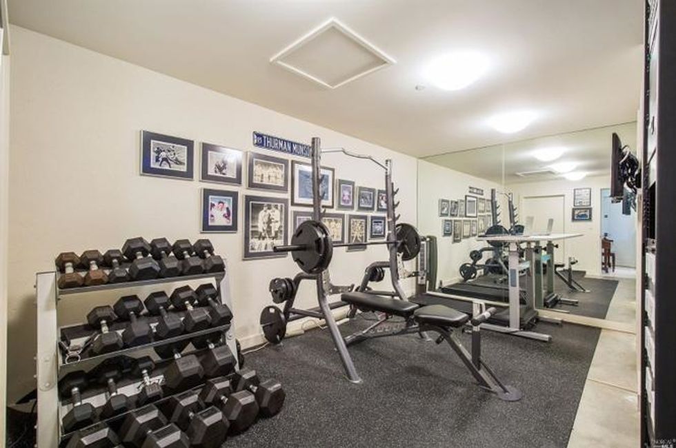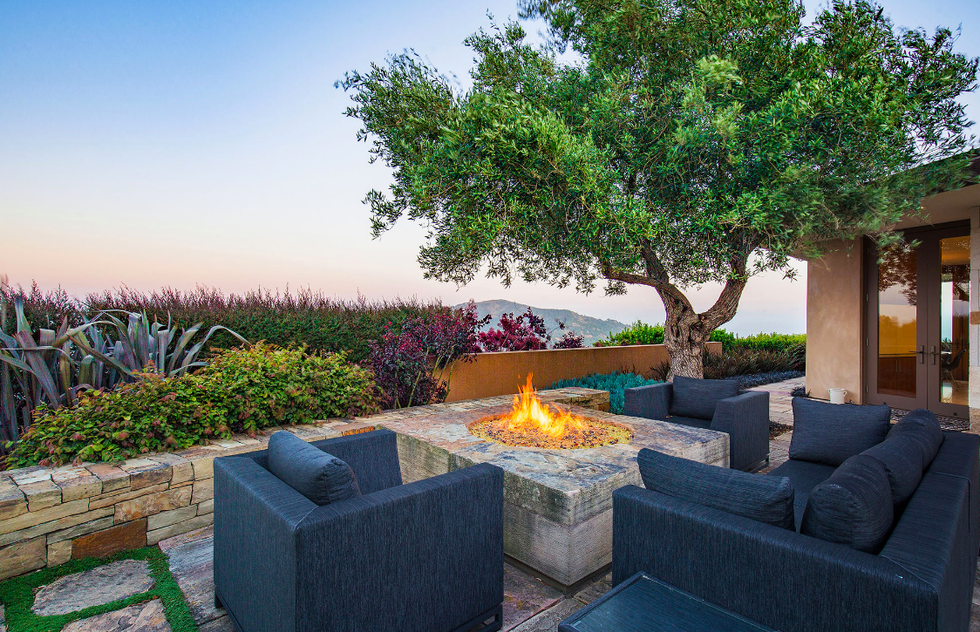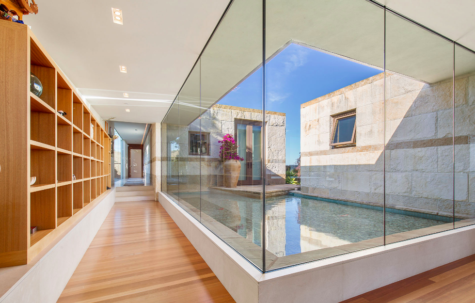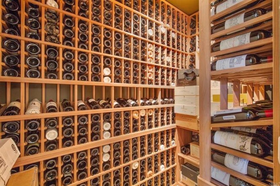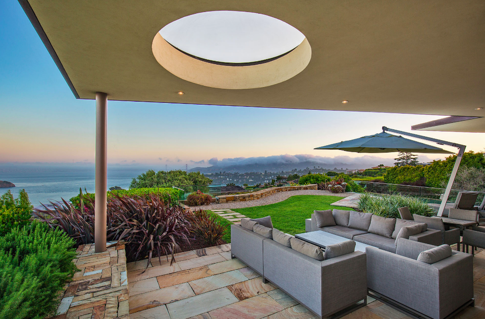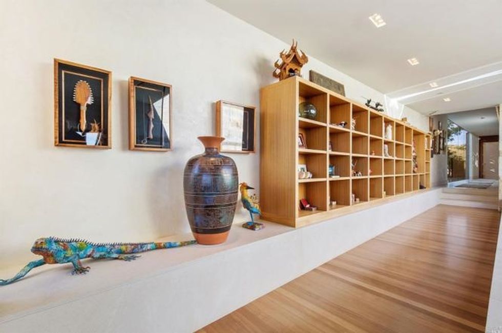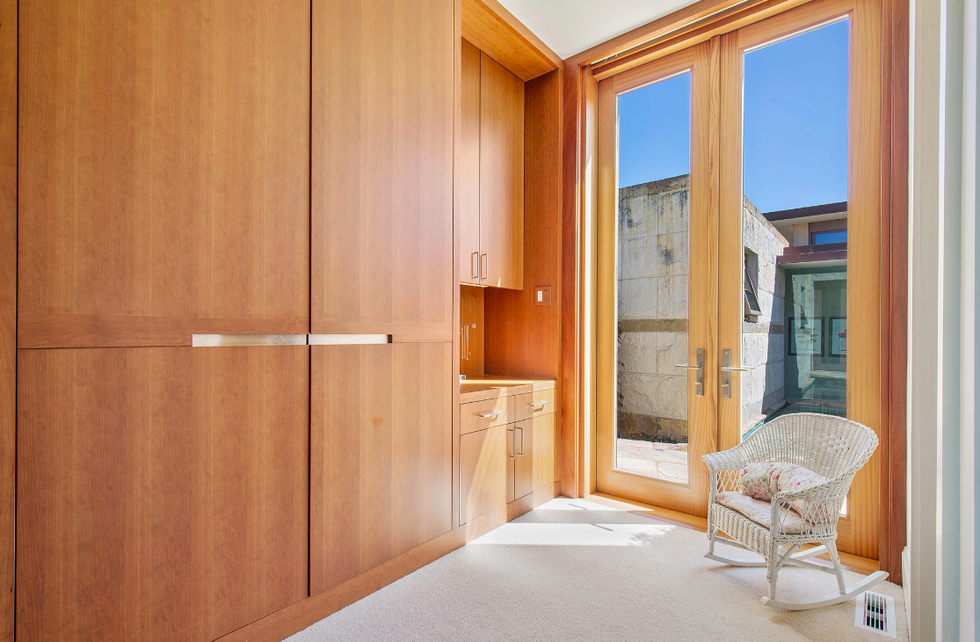 Next there the great room at the heart of the home, where a formal dining area has a glass bauble chandelier and the living space is designed to make you feel as if you're floating above the bay. Naturally it's surrounded by massive windows to take in vistas of SF, Angel Island, and the Marin Headlands—these are truly sweeping panoramas, people. Along the northern end of the room is a glass wall peering into the reflecting pool with swimming koi; and just beyond that are three more bedrooms, each with Brazilian cherry closets, en suite baths, and access to the lawn and patio with its circular skylight and firepit.