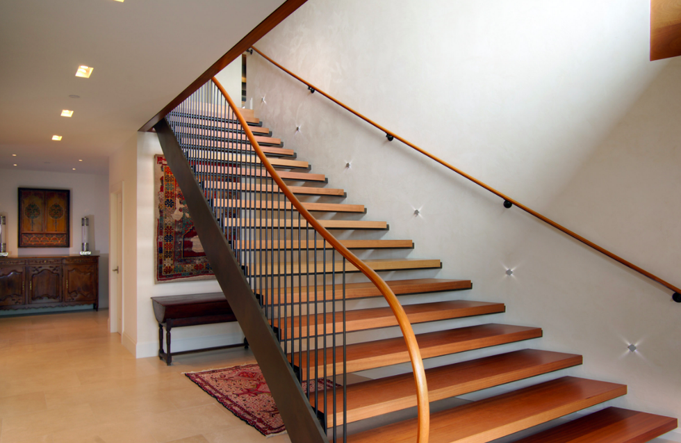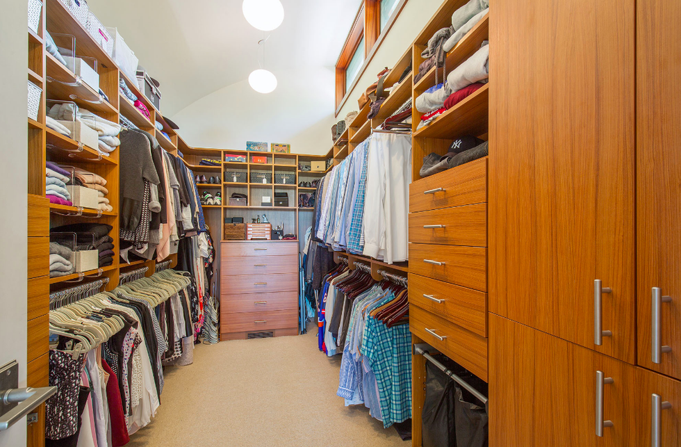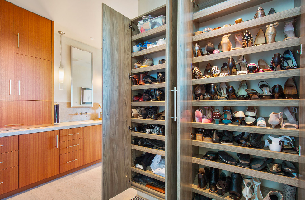 Stepping through the front double doors, you're met with a dramatic two-story foyer with a minimalist wood staircase whose snaking railing breaks the structured design with an organic flow. This lower level holds a guest bedroom with a spa-style en suite bath, exercise room, laundry room, and wine cellar that is temperature controlled, of course. To make your way up to the second floor, climb that pretty set of stairs or pop into the mahogany-clad elevator—if only there were a butler to press the button for you.
