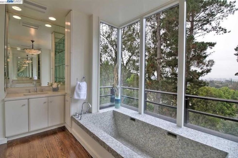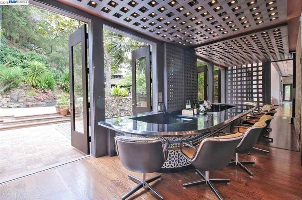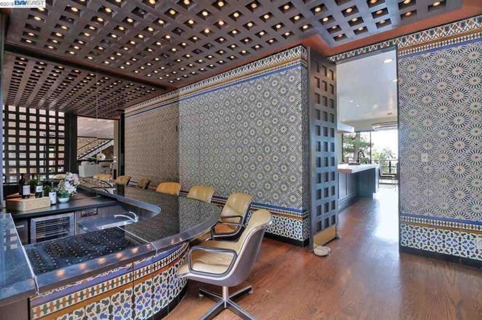 The updated kitchen even has its own balcony, and the master suite has a large soaking tub with an epic view and closet space for days. But it's the fabulously retro bar room, covered in gorgeous Moroccan tile, that you'll never want to leave. The in-home cocktail lounge opens onto a zen garden with a pagoda and heated pool—you might imagine Yves Saint Laurent and his louchely clad muse Loulou de la Falaise sipping drinks here in the sun.
