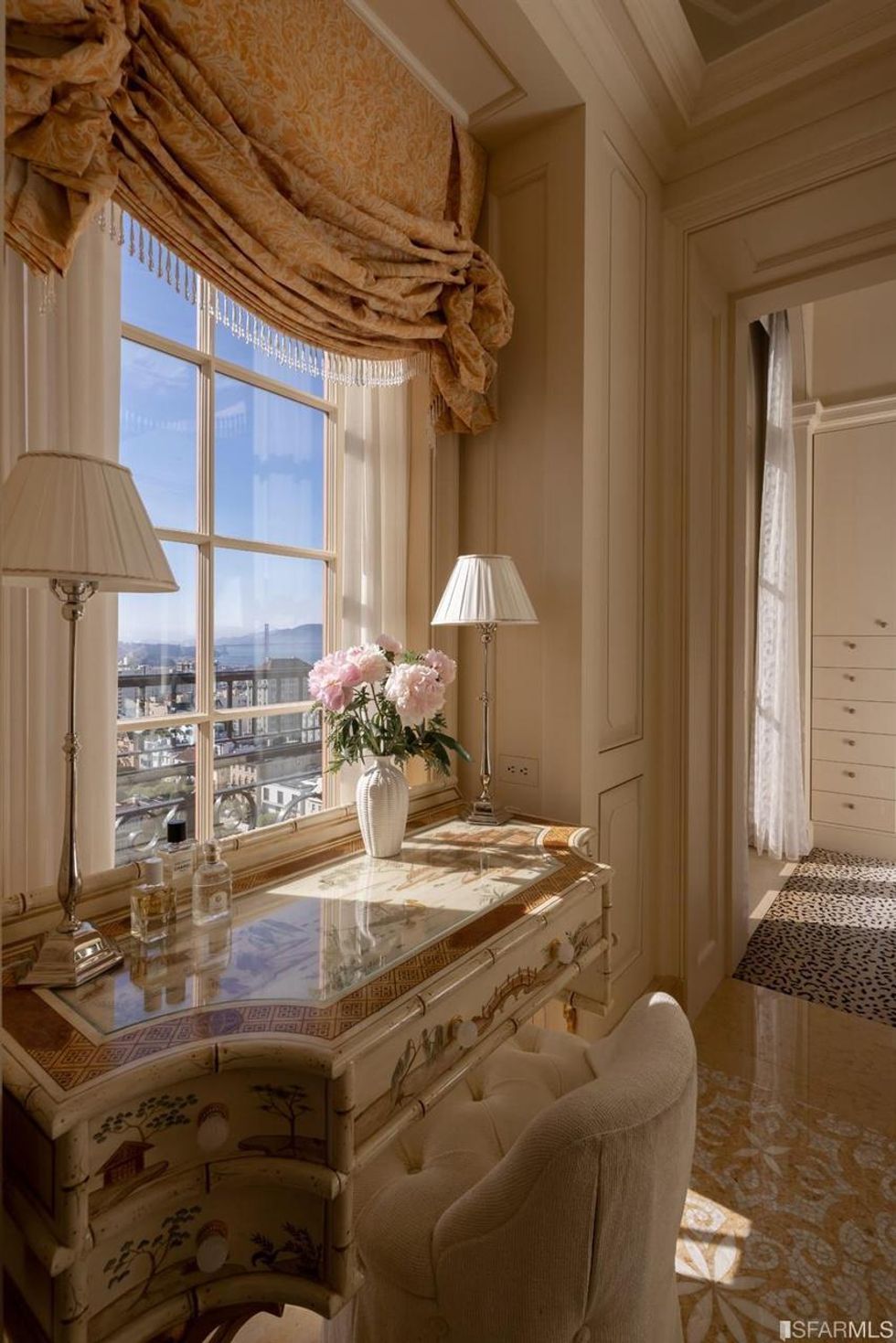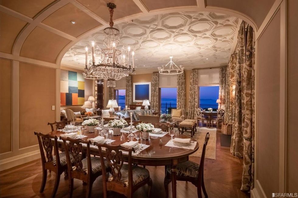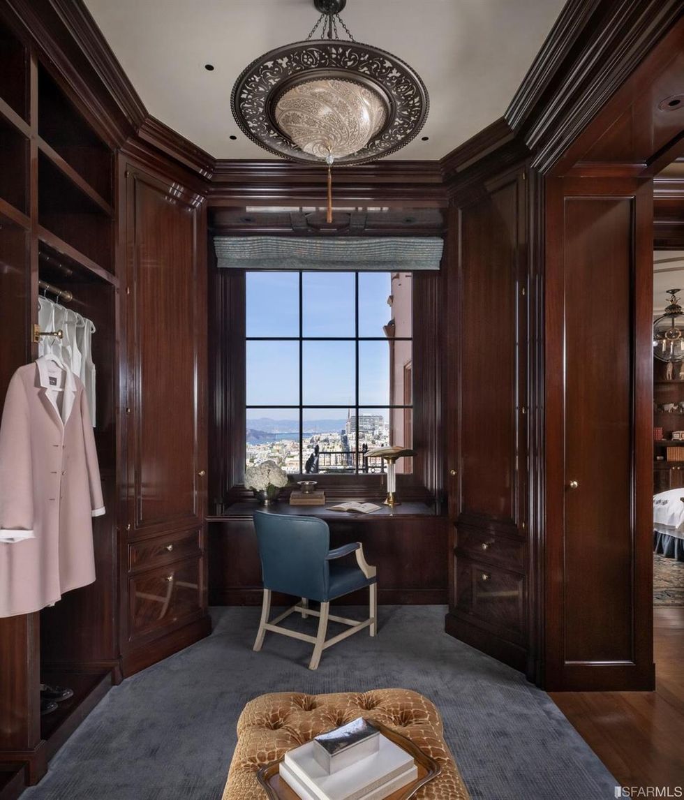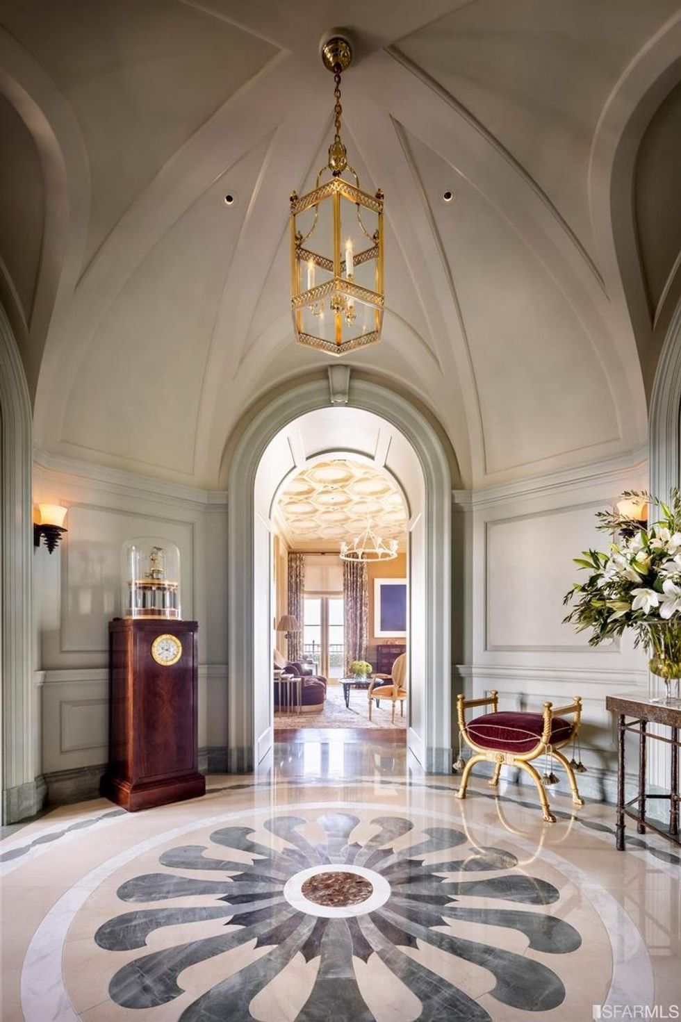 Prominent interior designer Suzanne Tucker, who has gussied up multiple floors here, also calls the 1924 Beaux-Arts building her favorite in SF. And no doubt—just imagine what her clients are paying her to furnish their lavish interiors here, where the architectural hallmarks include intricate everything, from the elegant porte cochere and formal gardens outside to the inlaid marble flooring and domed ceilings within.