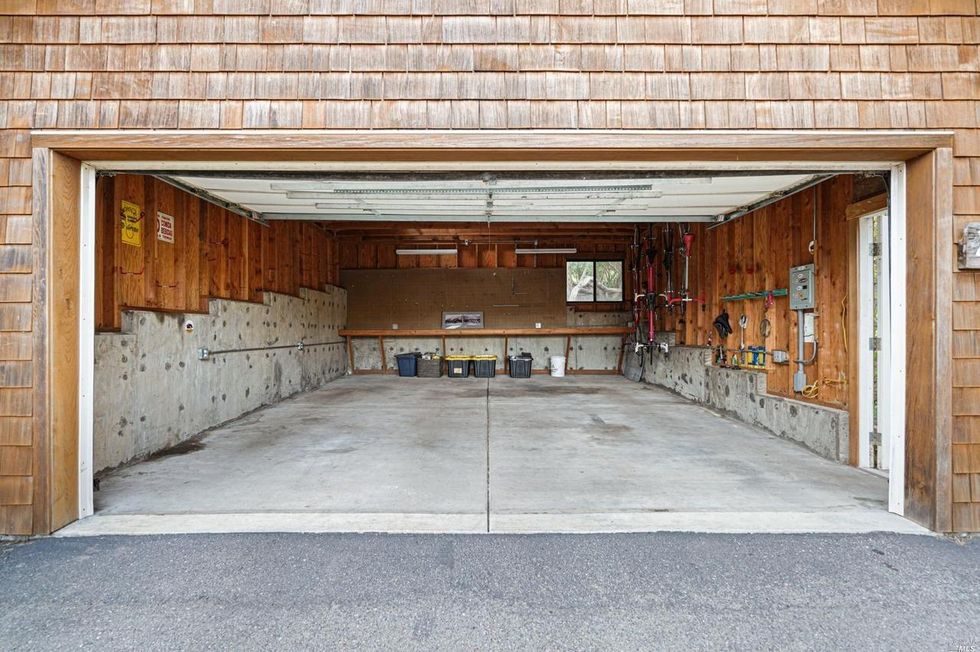 Updated amenities include an on-demand water heater, a new roof with solar panels, a workshop., and detached two-car garage.