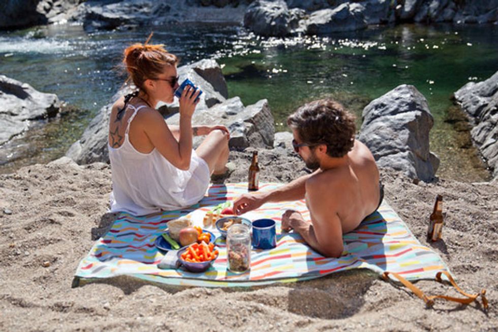 This waterproof picnic blanket (pictured above) is lightweight, durable, and keeps your belongings and bathing suit bottoms dry when you happen upon soggy ground. Use the attached straps and handle to roll up and tote to your destination, and use the built-in corner loops to stake ‘er down when the wind kicks up. // $31, Alite