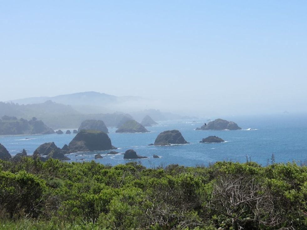 Protected by cliffs, seeing the sand and getting to it are two different things. There are a few fairly established-looking paths that lead you to the water, only to tease you with no way to actually get down onto the beach. After parking the car, face the ocean and head to the right. Signage about the endangered Point Arena mountain beaver and the western snowy plover mark the beginning of the way to the sand.