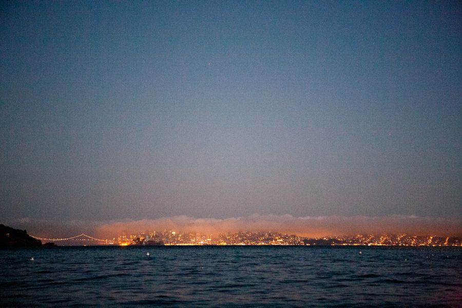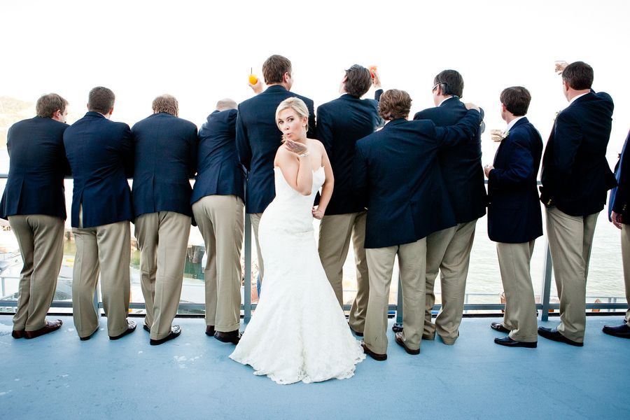 The groomsmen arrived on a yacht, ship's wheels graced much of the ornamentation, the tables were organized by different Jimmy Buffet allusions, and the festivities took place with a full view of the Bay and San Francisco beyond it.