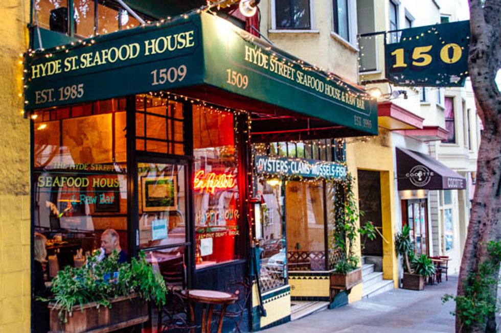 We're always down when it comes to happy hour, so you'll probably find us perched at Hyde Street Seafood House from 5-7pm happily slurping oysters and enjoying a cool white wine at this local favorite. // 1509 Hyde St, hydestseafoodhouse.com