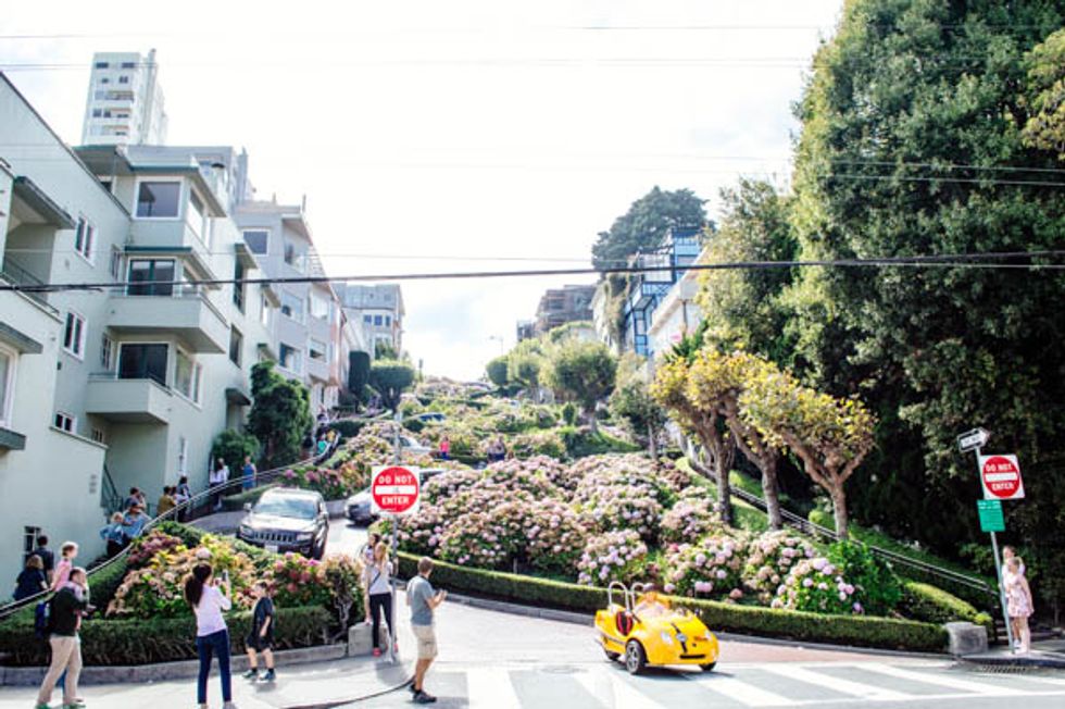 How many tourists you can count per minute at this popular postcard landmark? True, it's crowded 24/7 and it’s not even the most crooked street we have, but Lombard Street is a one-time must-see sight with lush flowers and pretty views. // map