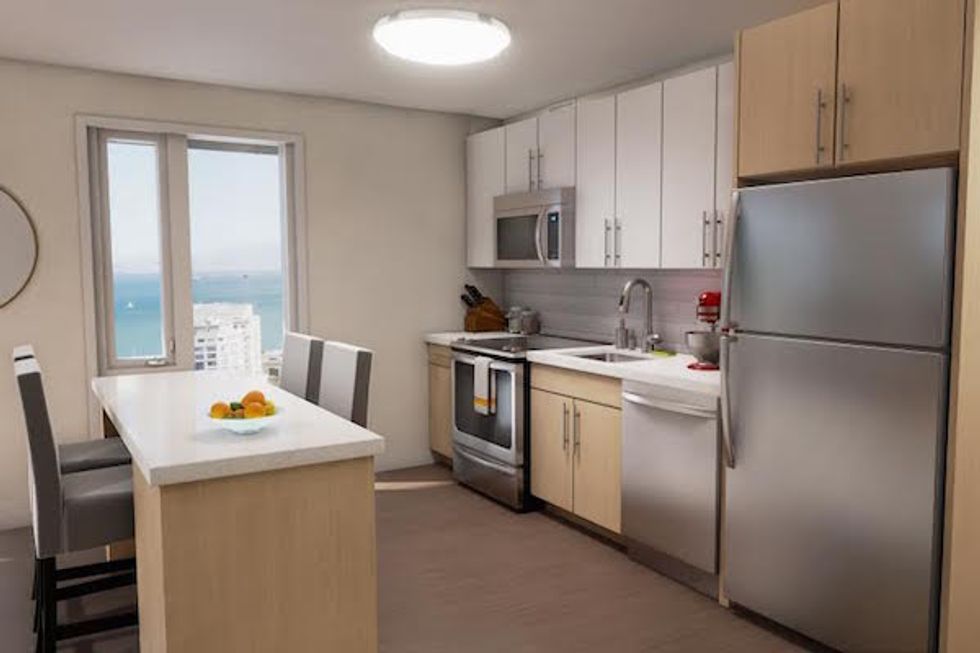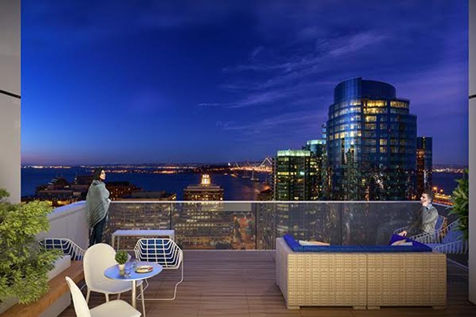 The coworking lounge offers multiple workstations, a copier, printer, and a private meeting room with A/V conferencing. Chill on one of eight sky decks to enjoy the fresh air and Bay views. The seventh-floor terrace includes gas grills and an outdoor spa. On those cherished sunny days, head to the rooftop sundeck to soak in the rays.
