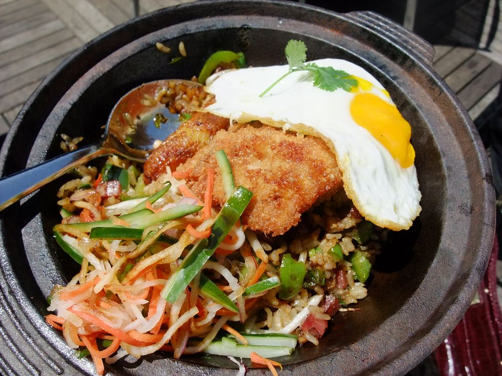 La Mar just added new brunch menu items in April. Chef Diego Oka, who was born and raised in Peru, says Peruvians don’t really eat brunch, but he’s added eggs to various entrees to create his own brunch-worthy dishes. Favorites off the new menu include the over-the-top Chaufa Power, which is a melange of fried rice, Chinese sausage, egg noodles, scallions, peppers, chifa seasonings with a side of fried banana, fried egg and Milanesa beef cutlet. Also try the more petite Montadito burrata, which is grilled Acme raisin bread topped with creamy burrata, pisco and aji amarillo-sautéed mushrooms, topped with a raw quail egg.