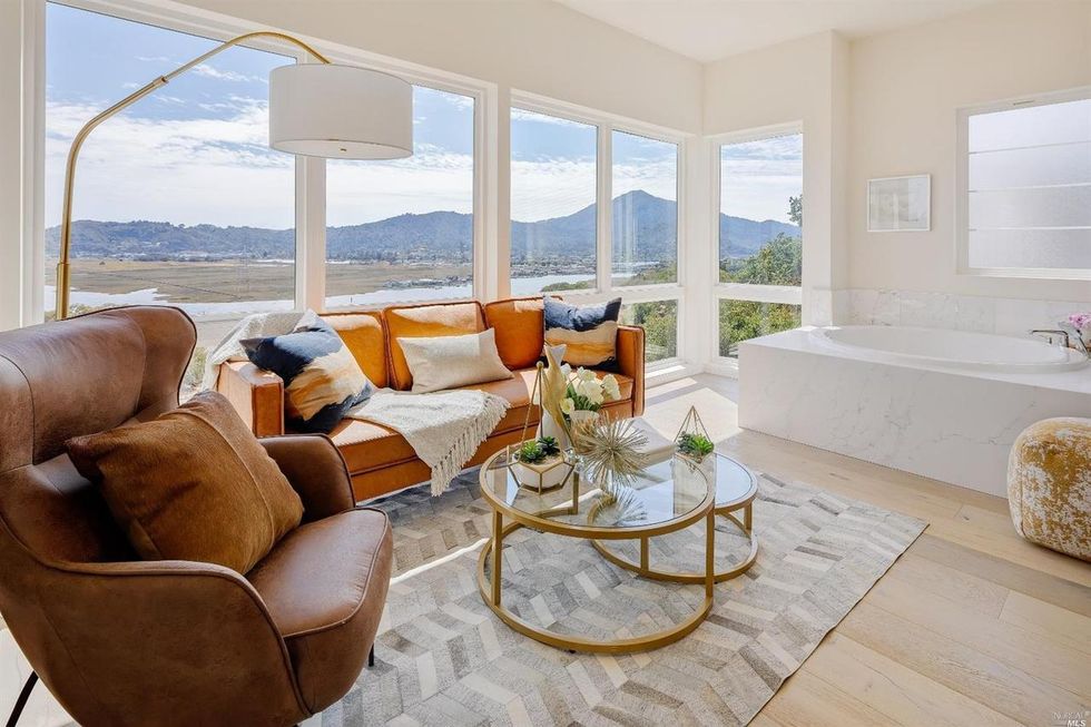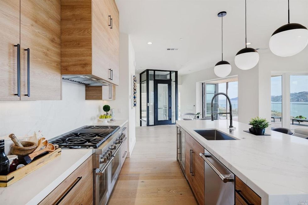 If the move from San Francisco to Marin feels dreamy but also a little remote, consider this new-construction home in Larkspur, which has modern amenities, easy proximity to the ferry, and all the hilly, watery views you'd want from life across the Golden Gate.