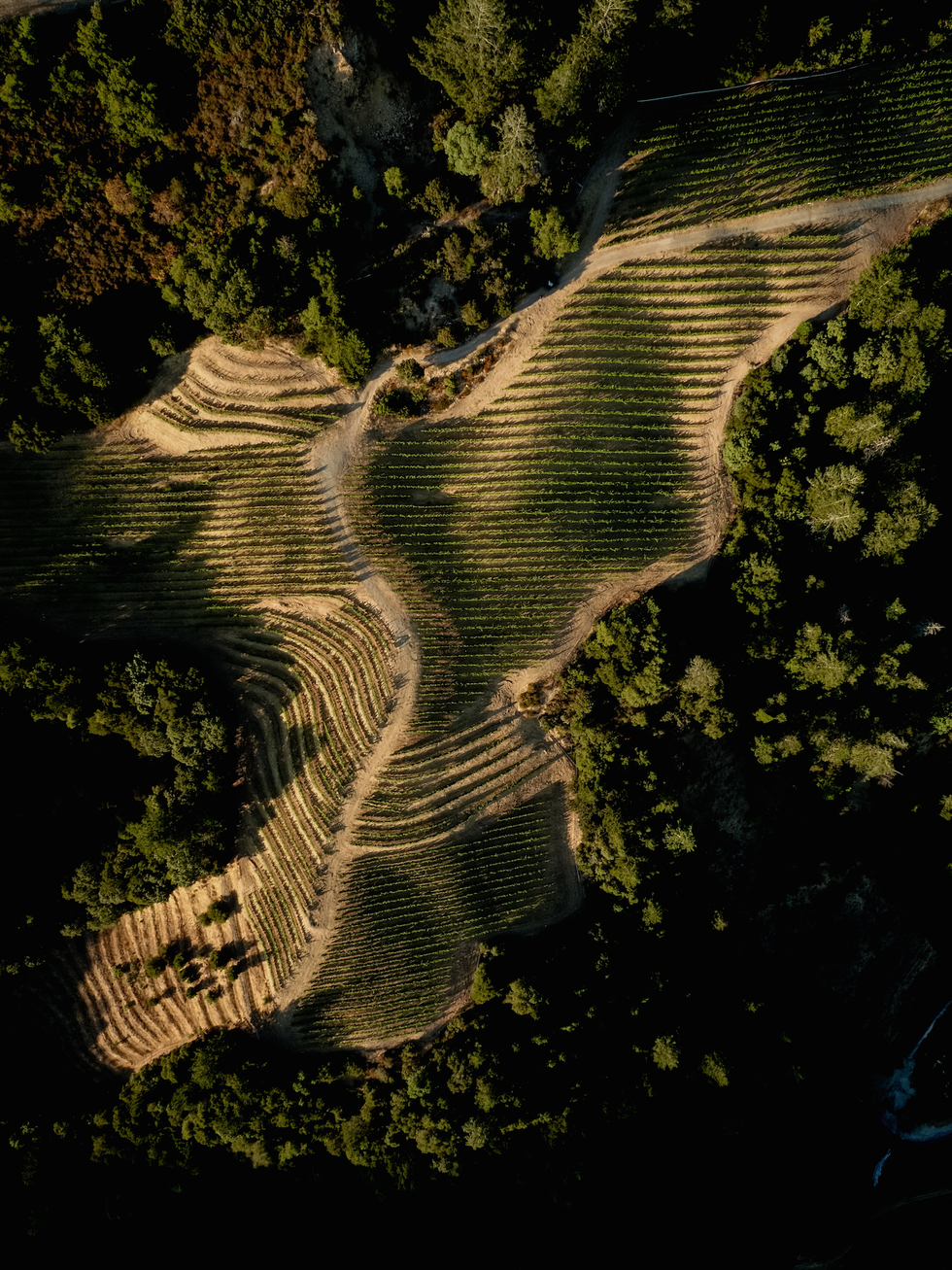 Of the 560 acres he purchased, less than one fifth of it was plantable for vines. But the mountain terroir, Newton correctly believed, was the key to growing premium grapes. Ranging from 500 to 1,600 feet above sea level, an elaborate mosaic of 71 vineyard parcels on 73 acres were dangerously terraced along the steep and tricky contours of the mountain. This was Newton's true masterpiece: These are some of the steepest vines in all of California, and due to new restrictions, they could not be legally replicated today.