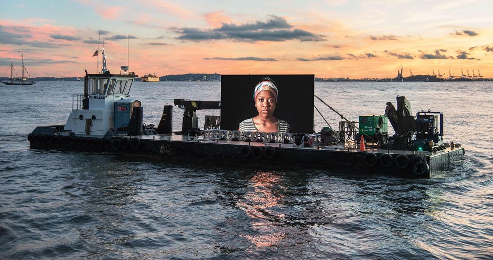 The 20-foot-wide LED video features portraits of refugees and asylees, many of them LGBTQIA+ and unaccompanied minors. Collectively, they represent the most vulnerable of populations fleeing their home countries to seek asylum in the United States. But that's not all. Already a powerful feat of public art, the enormous screen is also mounted on a barge that moves its way through the Northern Bay Area and Oakland Estuary.