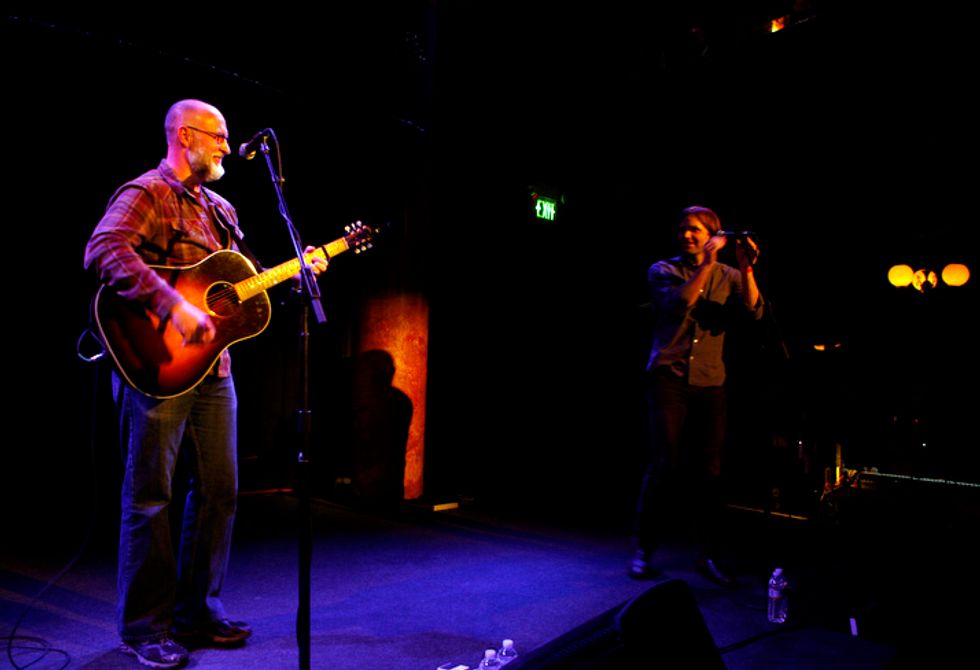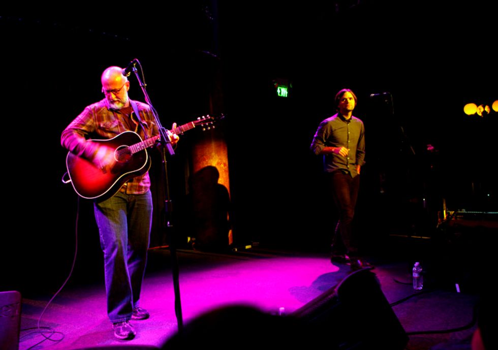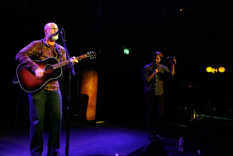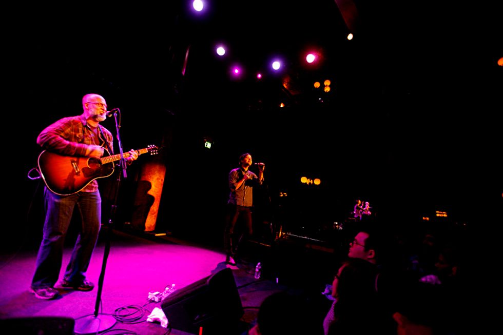 Anxiously, couples with hands clasped and oddly-large groups of men in plaid all stood in quiet reverence of Gibbard’s acoustic prose, some even announcing that they skipped church to make the Sunday night show. To honor the sacrifice, Gibbard played a generous track listing of well-known Death Cab and Postal Service anthems like “Cath” and “I Will Follow You Into the Dark.” He held his own between a guitar and a piano, but even the most satisfying solo shows call for a token special guest duet (no, it wasn’t Gibbard’s wife Zooey Deschanel, much to my dismay). That turned out to be Bob Mould, with whom Gibbard did a fresh and lightly rehearsed “If I Can’t Change Your Mind.” The crowd composed themselves and Gibbard carried on with the satisfied grin of someone who just played alongside their idol.