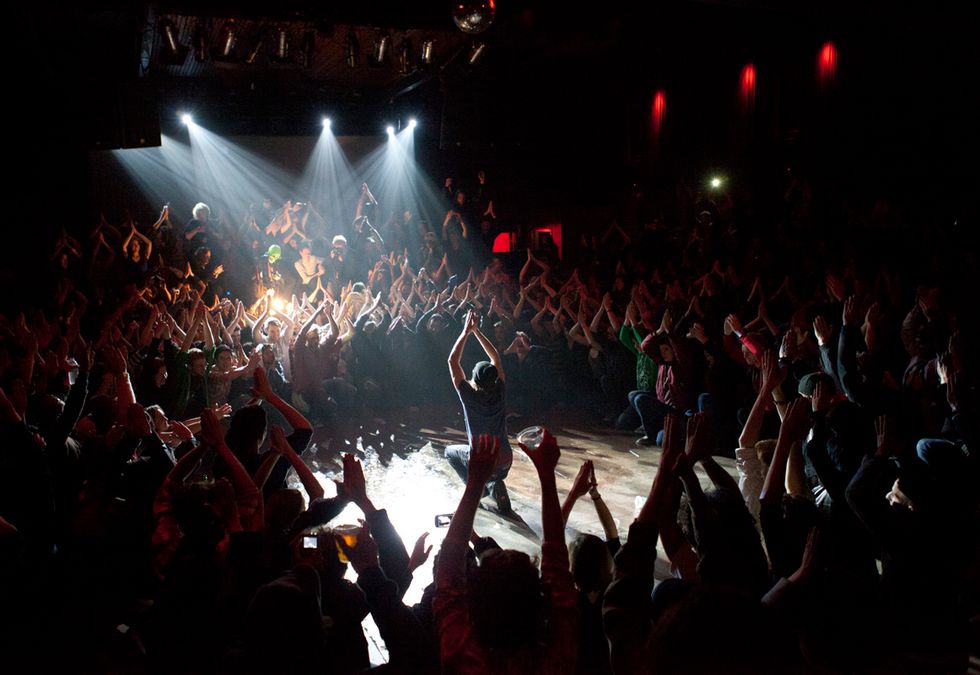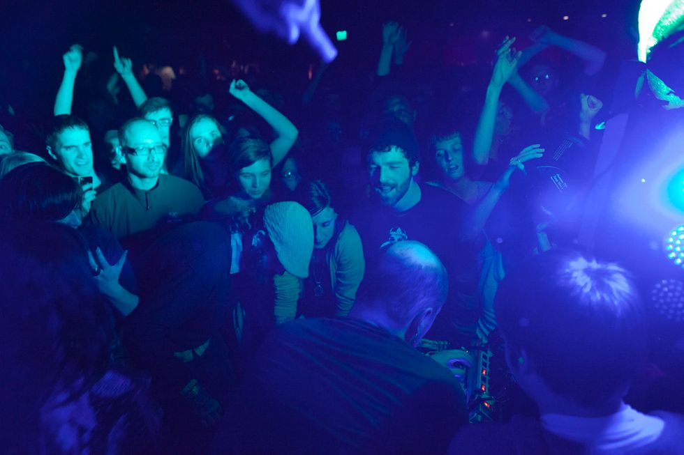 The next two hours were pure collaborative madness only a ringleader like Deacon could suck out of a crowd of twenty-somethings. From a dance-off inspired by Jurassic Park and Avatar to his creation of an epic human tunnel that snaked all the way outside and back in again, the audience stuck like glue to Deacon's each and every whim, all of which he peppered with real talk about being a fat kid in high school and goofy jabs at Southwest Airlines for losing his luggage and breaking his equipment.