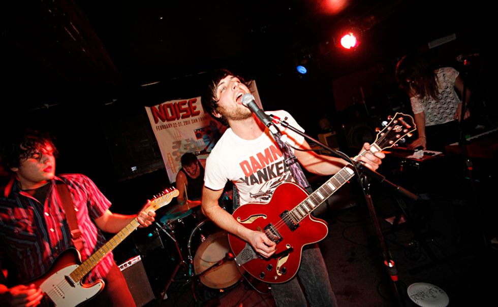 It was a coming-home for Versus, a band whose core, Ed and Richard Baluyut, used to live in San Francisco. The crowd shouted "Welcome home! We love you!" throughout their set of alt-grunge jams, starting with "Invincible Heroes", a criminally catchy track that begins in a soft swirl of crystal guitar notes before raging into its signature onslaught of embittered lyrics, heavy riffs and gorgeous violin accents. The headliners have been slowly clawing their way back into the collective consciousness; they released their first LP in ten years. They even laughed about how it dropped the same day as labelmates and future Grammy upstarts the Arcade Fire's The Suburbs. Nonetheless, the band wailed through "The Ones And Threes" from the latest album, a departure from their decades-old sound into a more melodic world exploring the themes of an unraveling relationship.