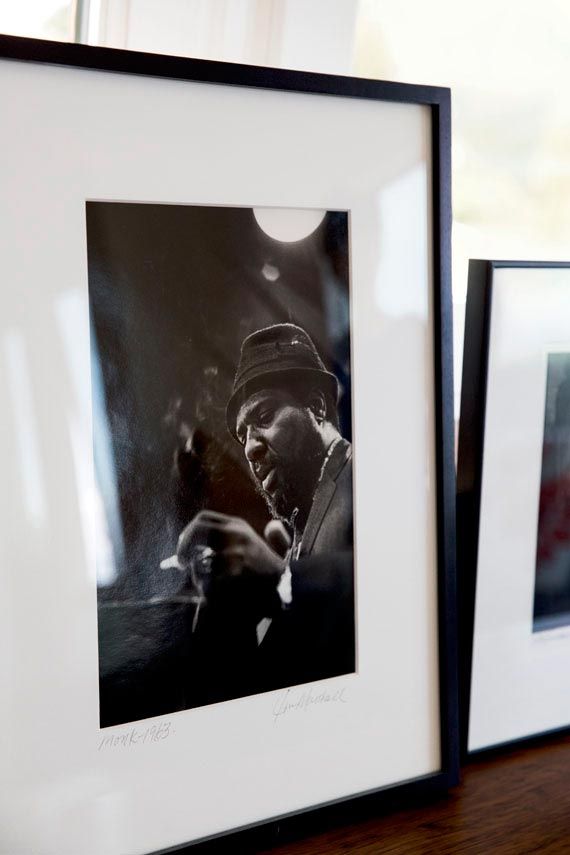 Even his son Theo’s bedroom walls feature works by manga-inspired pop artist Yoshitomo Nara and—cue full-circle moment—a Jordan print by Fairey. The 5-year-old is named after jazz pianist Thelonious Monk, pictured in one of Kurland’s more treasured candids by the late SF rock-and-roll photographer Jim Marshall. Rare shots of a wistful John Coltrane (also a Marshall print) and trumpeter Donald Byrd giving an accidental concert in a subway car (a William Claxton snap) are also deeply meaningful, resonating with Kurland’s first love: music. “These photos serve as a reminder of how I got here,” he says, “by just being a fan.”