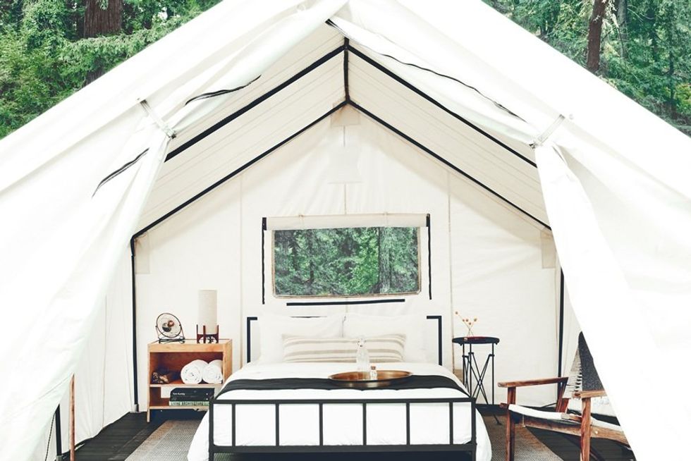 This Lake County glamping option is ideal for the mountain bikers and oenophiles in your crew. Head to Huttopia Wine Country, where you'll find safari tents dotted around an 80-acre property conveniently located on the grounds of Six Sigma Ranch and Winery. Borrow an electric mountain bike and set out to explore the miles of single-track trails on the ranch. Swing by the tasting room to enjoy a glass of pinot noir, or book a tour of the property aboard their all-terrain Pinzgauer—a real treat. When it's time for some relaxation, the Huttopia pool will be waiting for you.