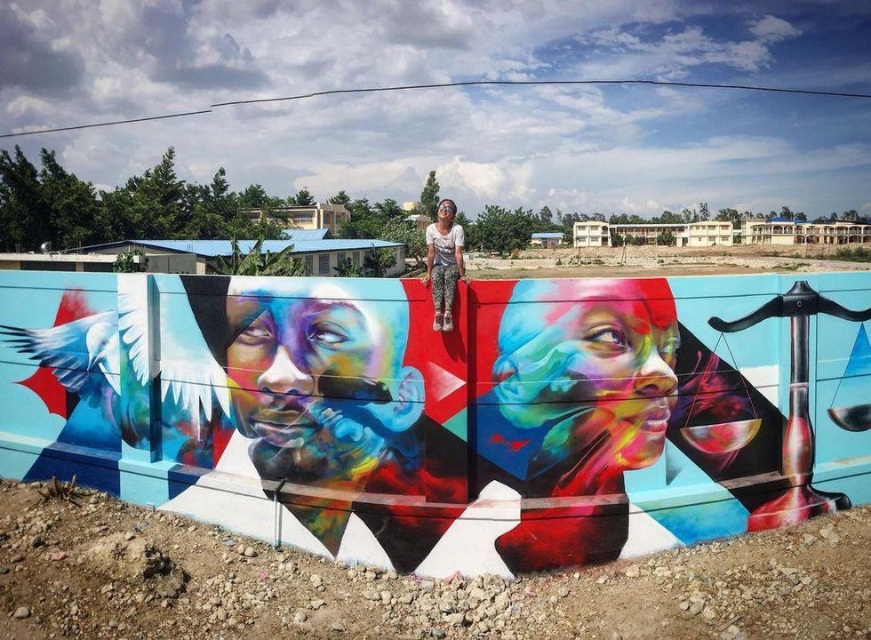 The next piece fell into place after college when Torneros began painting wall murals. She felt so alive, so far away from the robotic, computer-based work she had been doing, that she took on a new alias: Hueman. In the male-dominated graffiti landscape, Hueman’s signature “freestyle” approach—in which she builds faces and imagery from abstract sprays and blotches of paint—stood out. The more she hustled, the more her work paid off: Her murals began to multiply, first in L.A. and the Bay Area—hers was one of the first commissioned in L.A. after the city lifted its street art ban in 2013—then around the world.